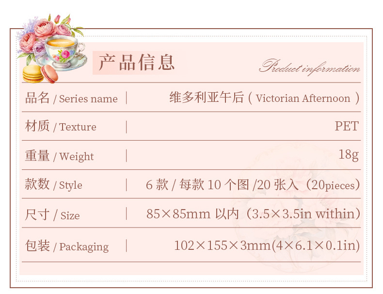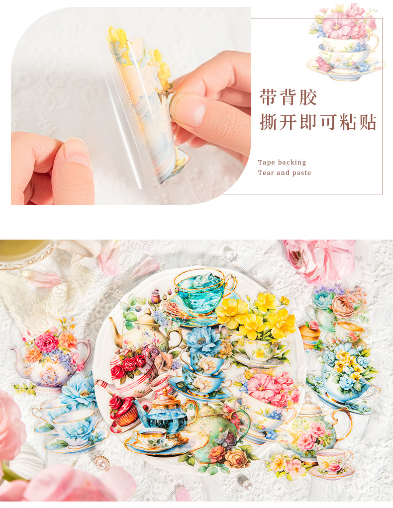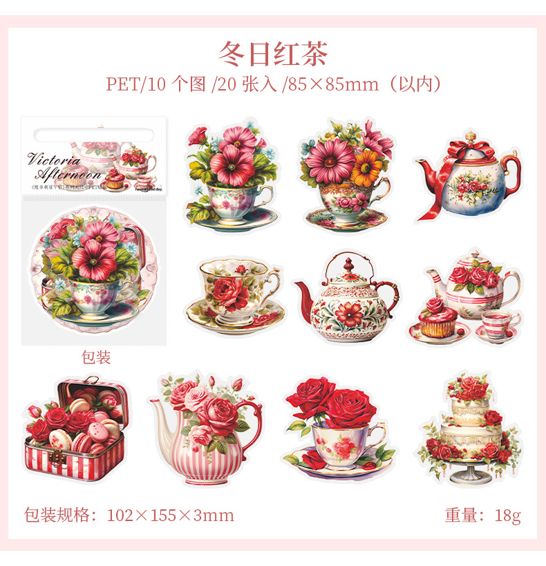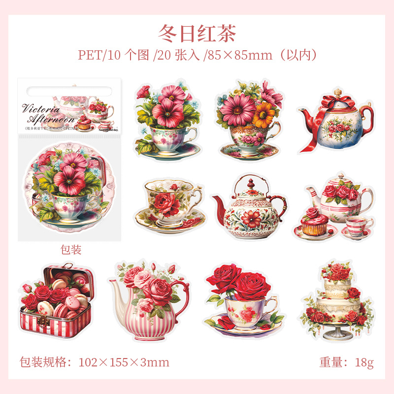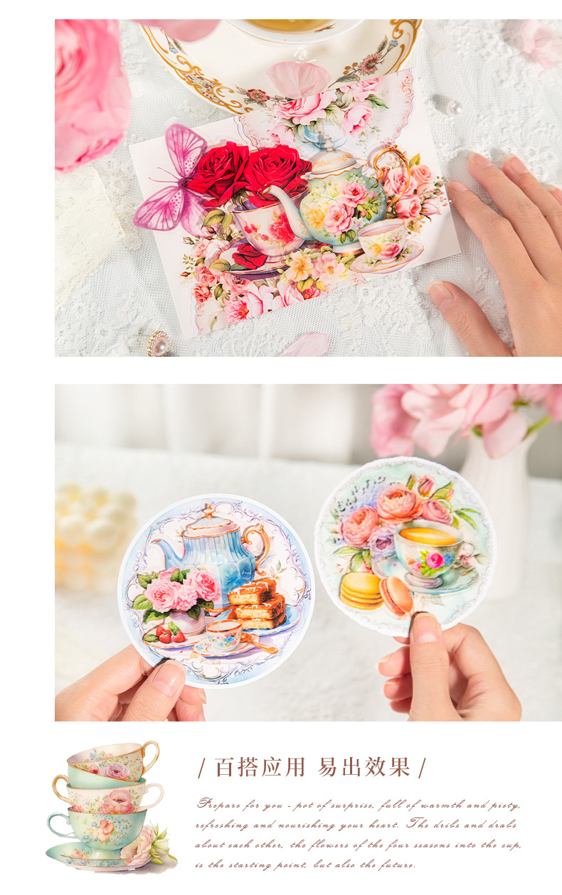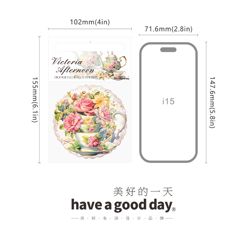 아름다운 날 애완 동물 차 세트 스티커 빅토리아 오후 시리즈 대형 손 계정 재료 장식 6 모델