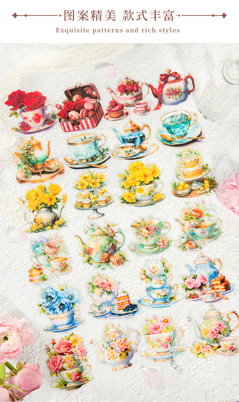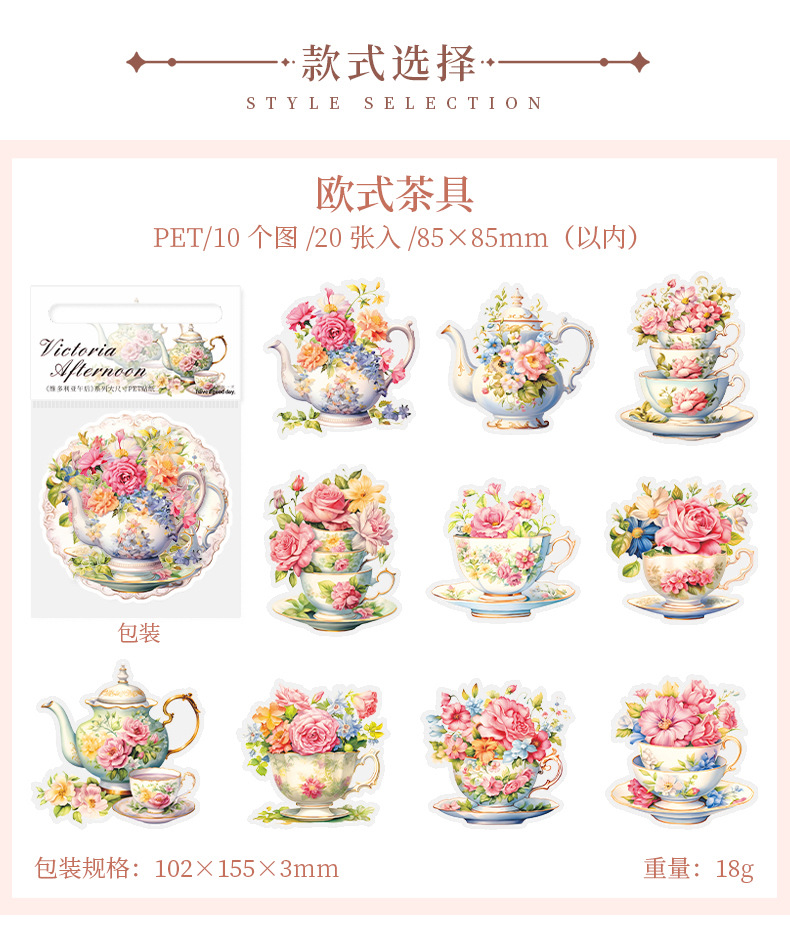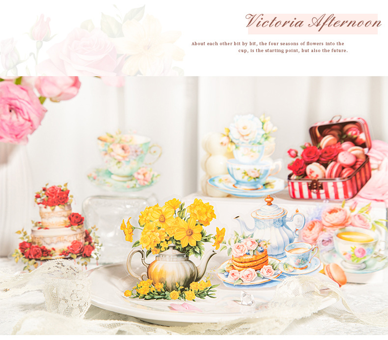 아름다운 날 애완 동물 차 세트 스티커 빅토리아 오후 시리즈 대형 손 계정 재료 장식 6 모델스토어 가기