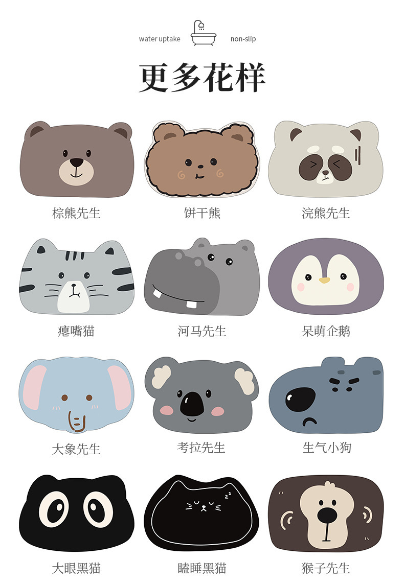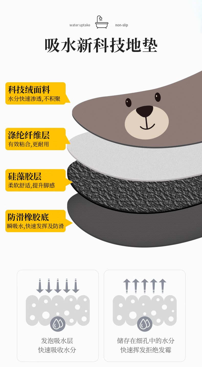 만화 모양의 곰 규석 진흙 매트 욕실 미끄럼 방지 매트 가정용 화장실 문 입장 빠른 건조 부드러운 발 매트