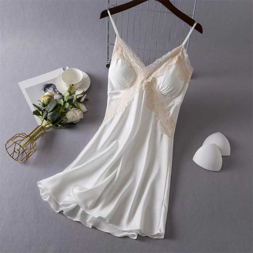 • 새틴 실크 나이트 드레스-베이지 레이스 스타일