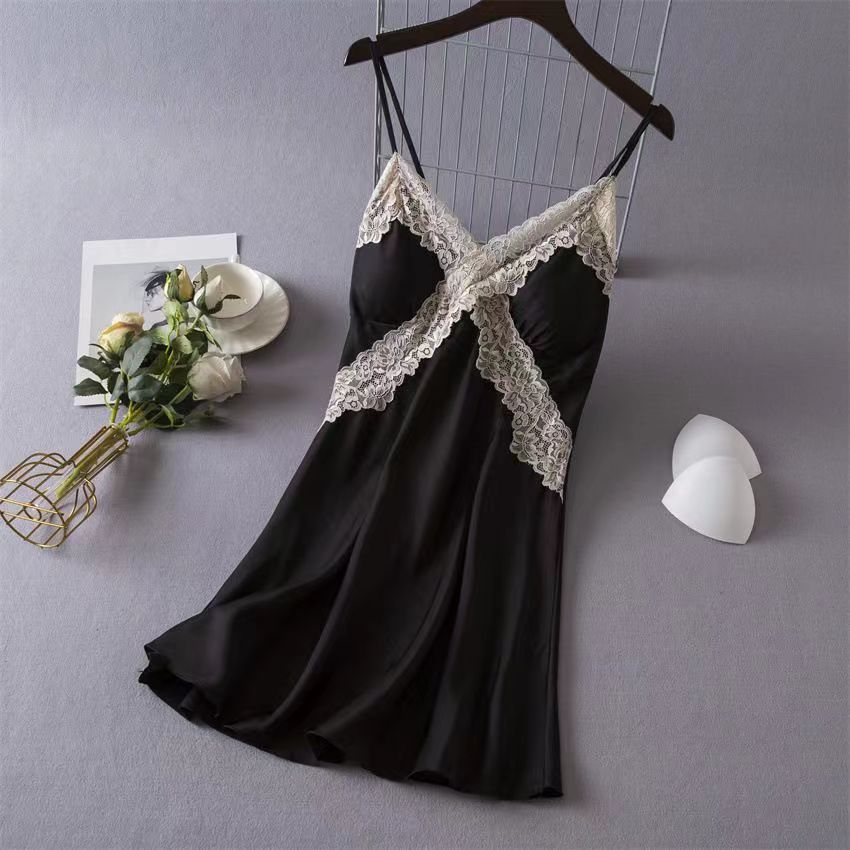 • 새틴 실크 나이트 드레스-판타지 블랙 레이스 스타일