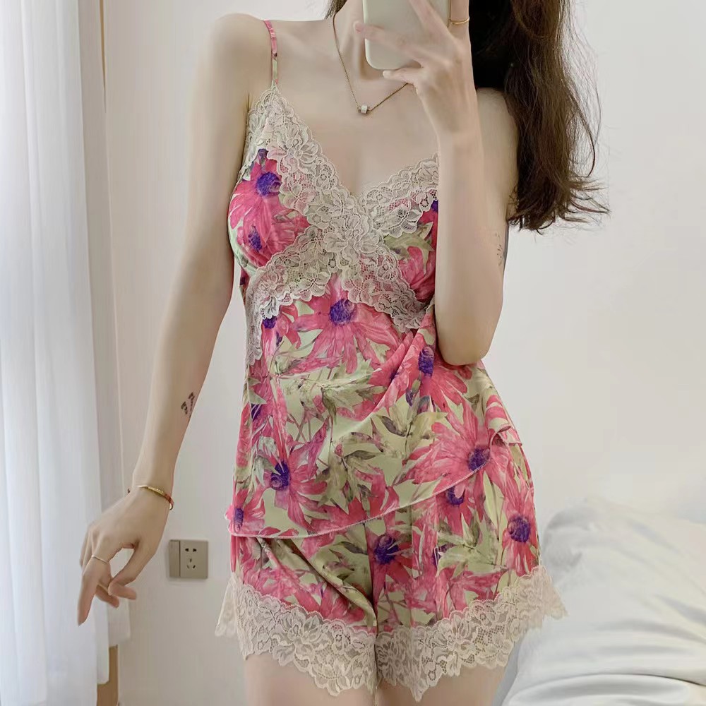 섹시한 플러스 사이즈 잠옷 여성 여름 아이스 실크 캐미솔 반바지 투피스 루즈 홈웨어 세트스토어 가기