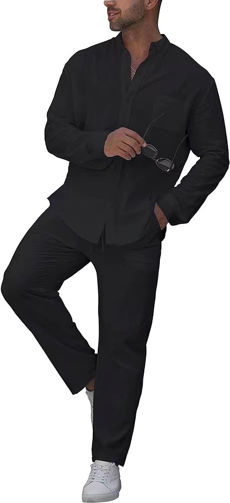 새로운 국경 남성 스포츠 세트 트렌디 한 단색 다재다능한 슬림 투피스 세트 세련된 캐주얼 스포츠 세트 남성스토어 가기