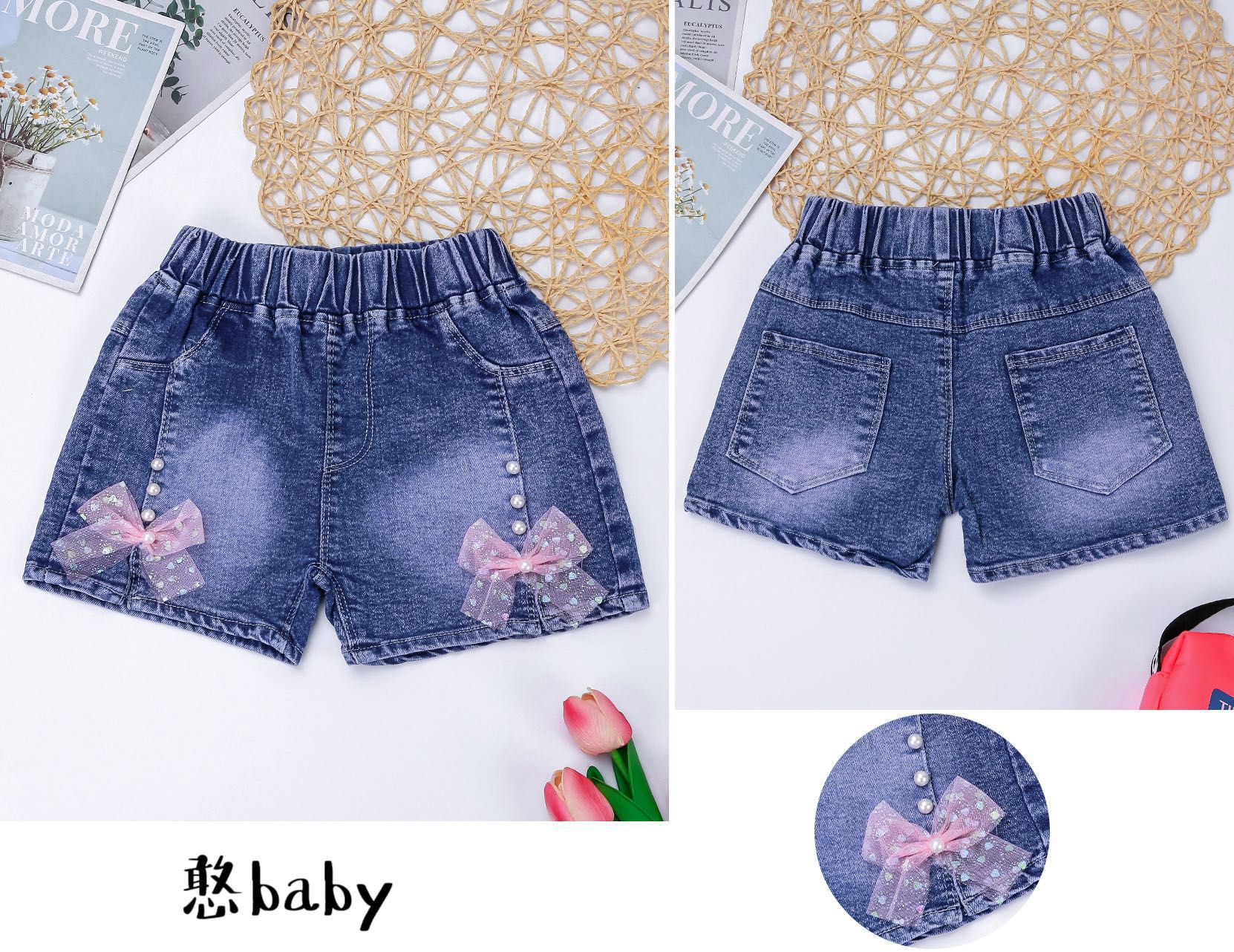 여자 청바지 여름 새로운 반바지 트렌디 한 어린이 한국 스타일 소녀 트렌디 한 어린이 캐주얼 겉옷 바지스토어 가기