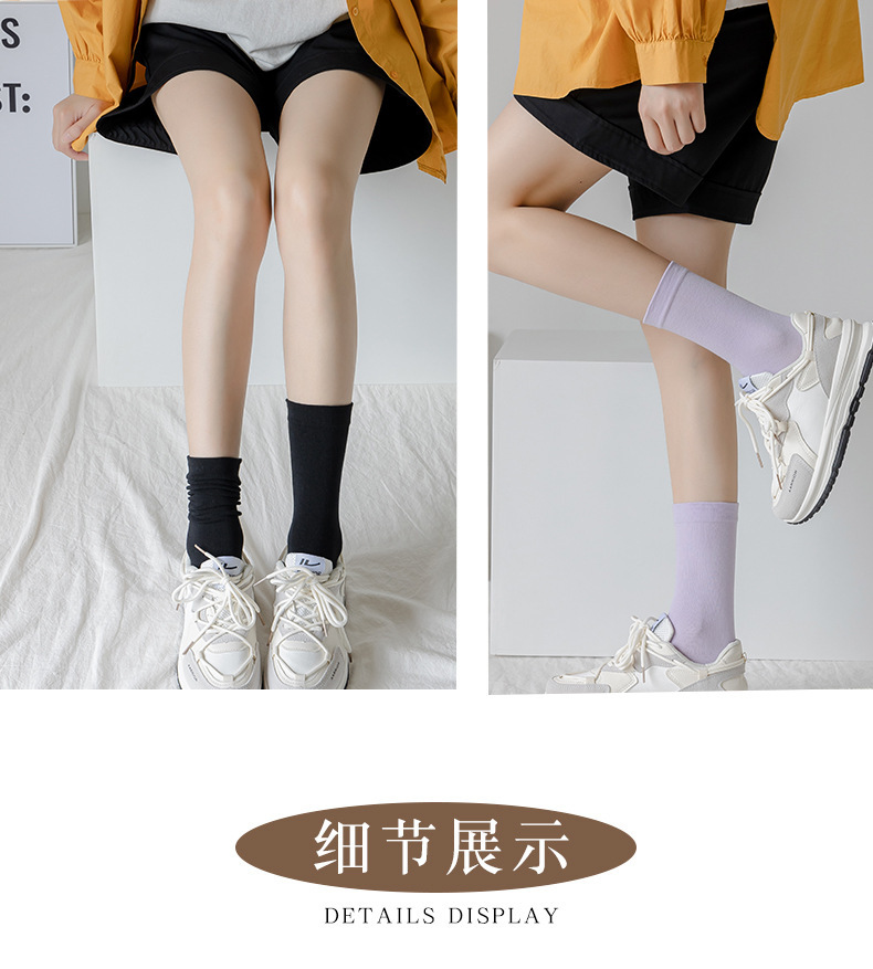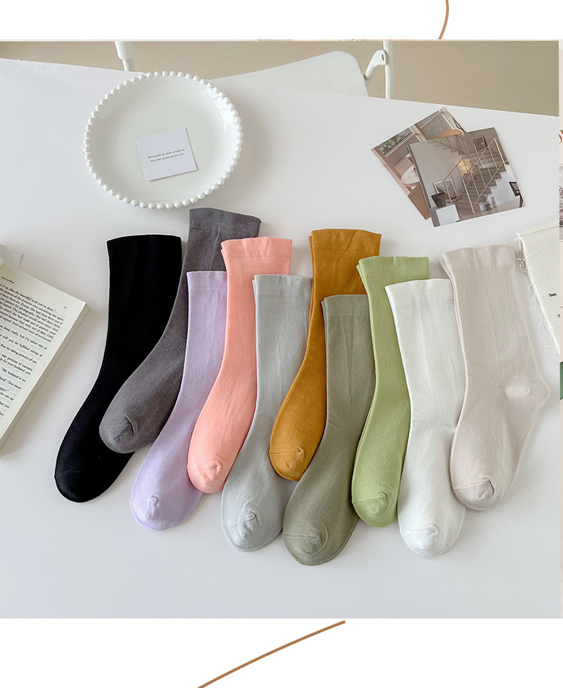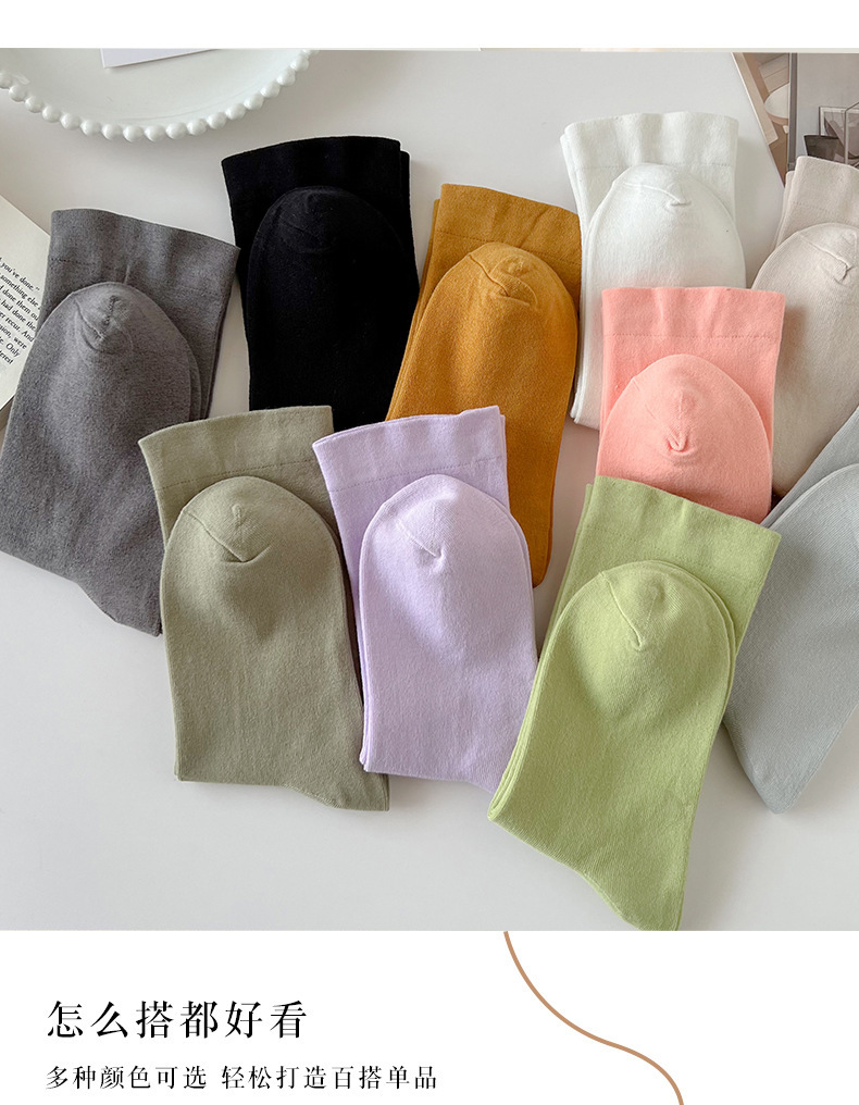 Xiaohongshu 뼈없는 감금 양말 봄과 가을 안티 필링 더미 양말 느슨한 입 얇은 솔리드 컬러 코튼 양말 여성용 중간 튜브