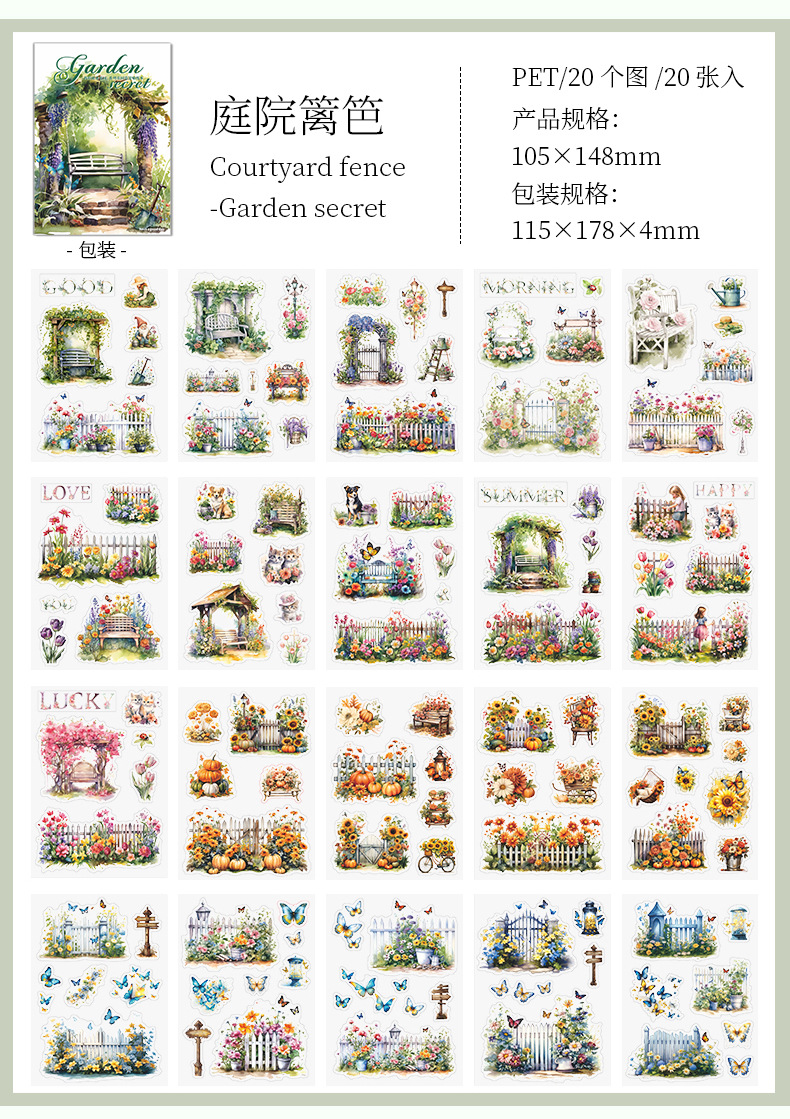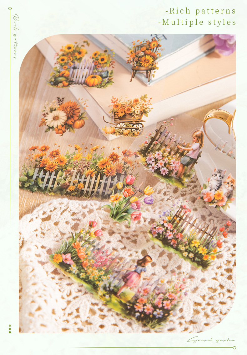 아름다운 날 스티커 책 내 비밀 정원 시리즈 PET 대량 절단 다이 손 계정 소재 스티커 4스토어 가기