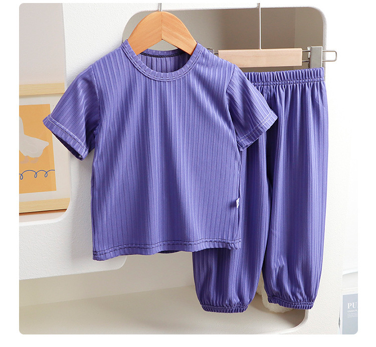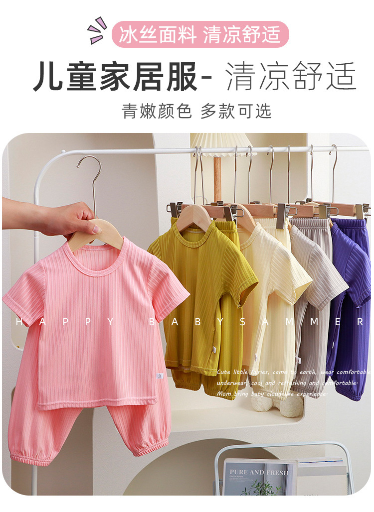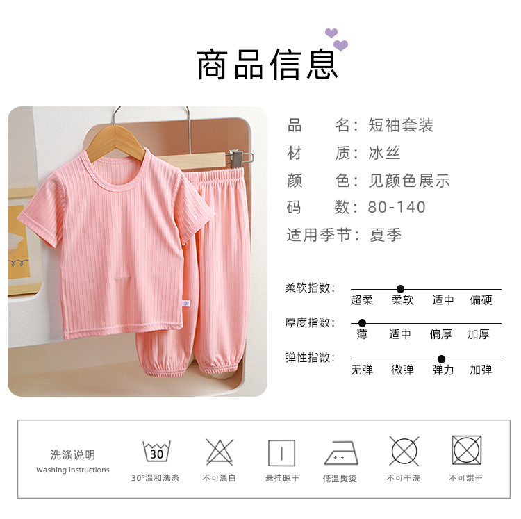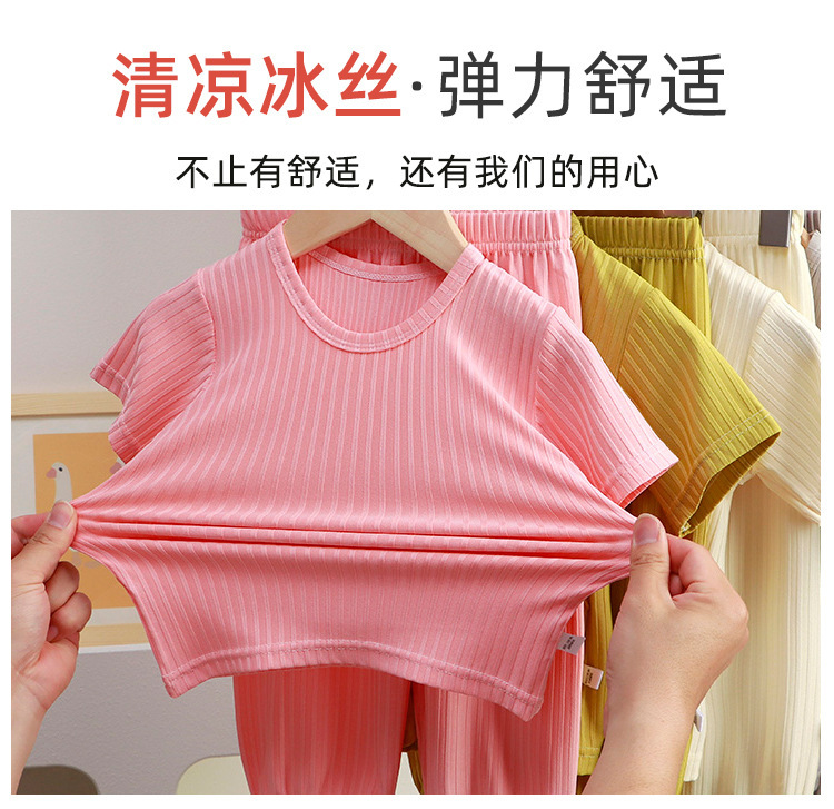 아동용 잠옷, 여름 여아용 반팔 가정복, 남아용 한국식 레깅스 세트, 얇은 에어컨 의류