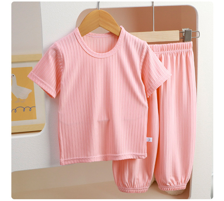 아동용 잠옷, 여름 여아용 반팔 가정복, 남아용 한국식 레깅스 세트, 얇은 에어컨 의류스토어 가기