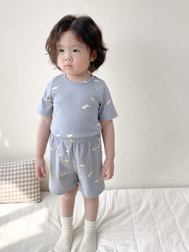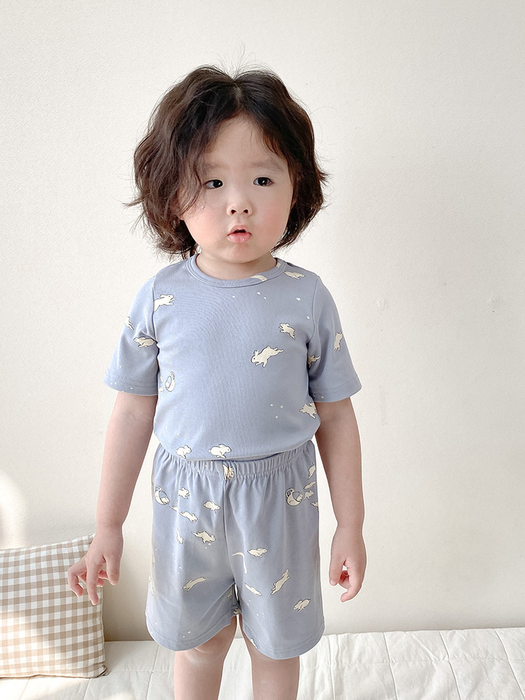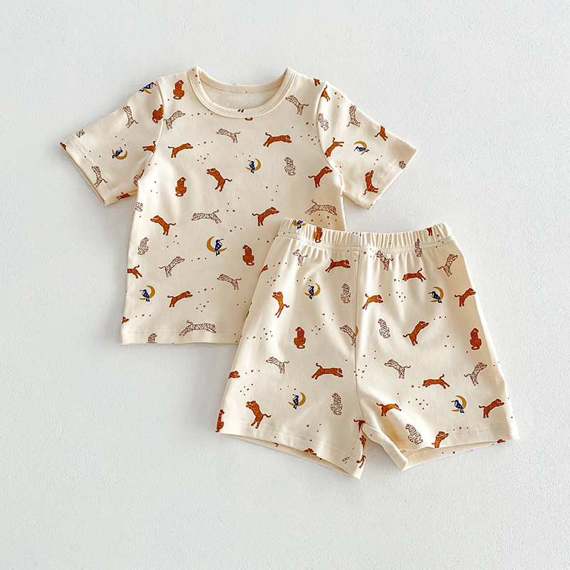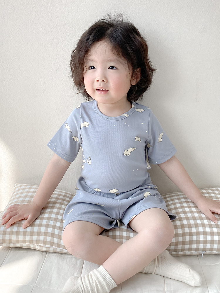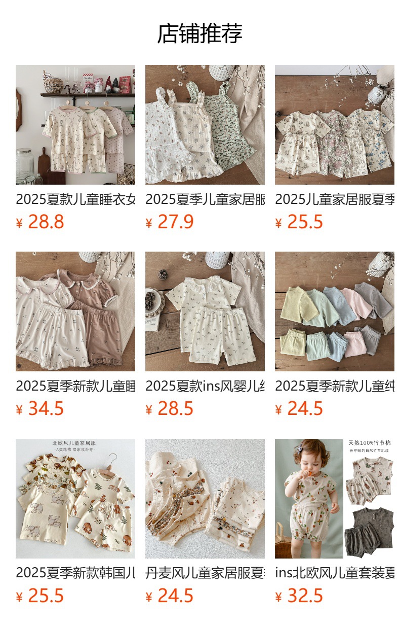 2025 여름 어린이 잠옷 세트 북유럽 스타일 어린이 집 옷 소년 잠옷 클래스 면 아기 홈 옷스토어 가기