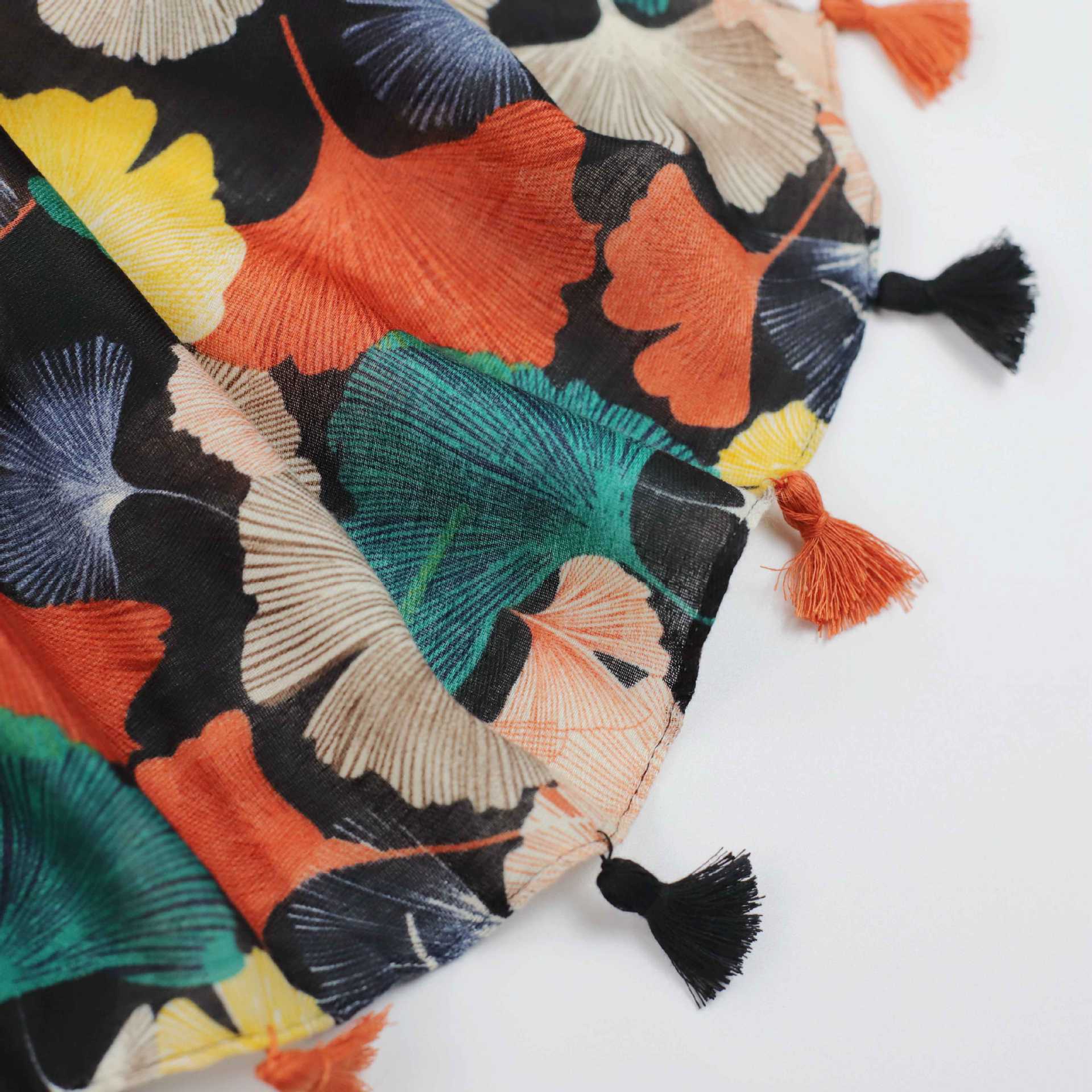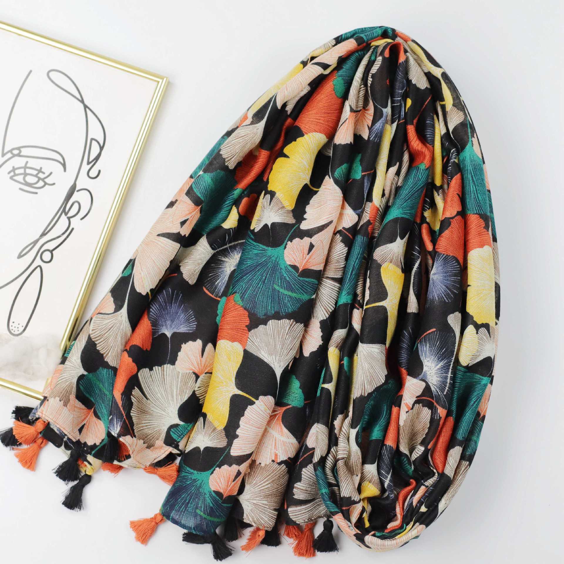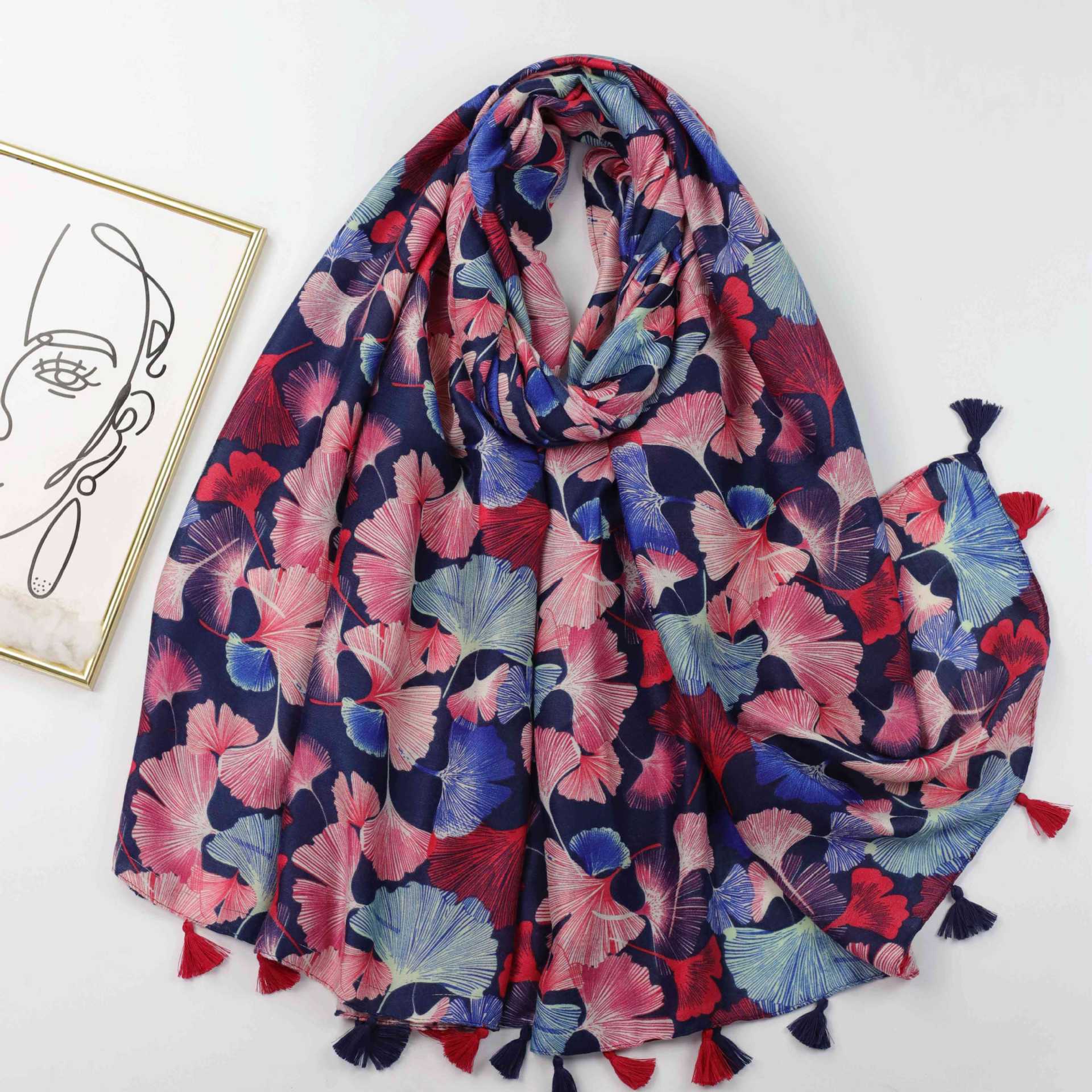 풀 에디션 은행나무 잎 공장 판매 대외 무역 국경 사틴 인쇄 긴 수건 여행 휴일 선 스크린 따뜻한 목도리스토어 가기