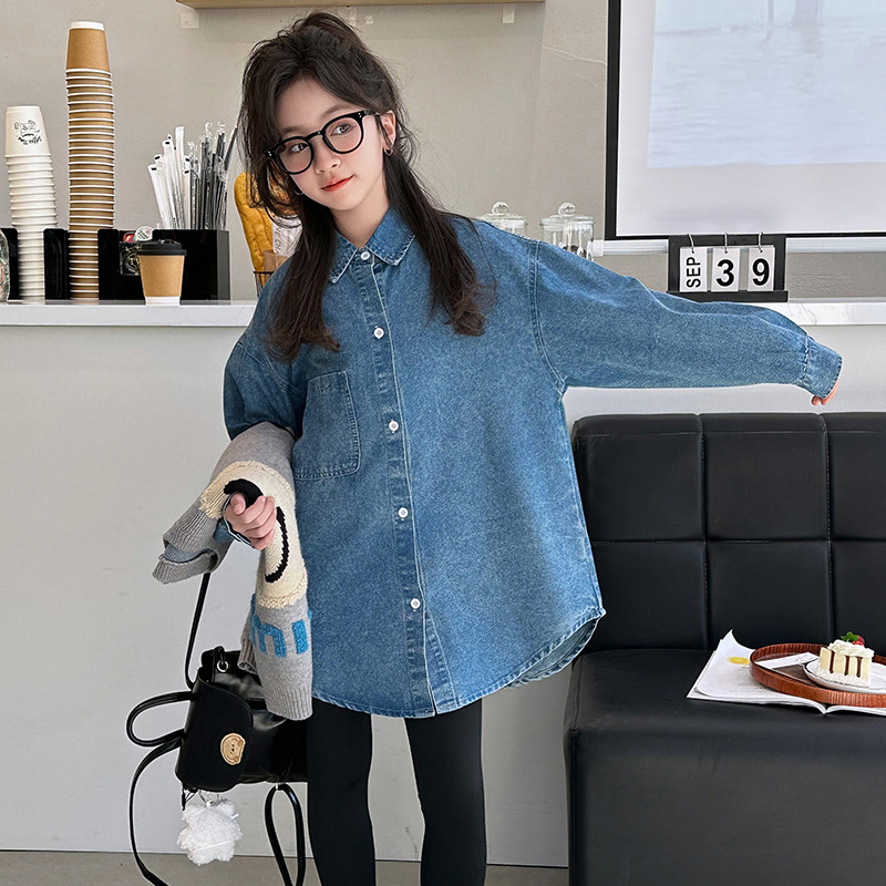 여아 정장 2025 봄 신상 여아 스마일 스웨터 조끼 아동 데님 셔츠 봄 가을 투피스 세트스토어 가기