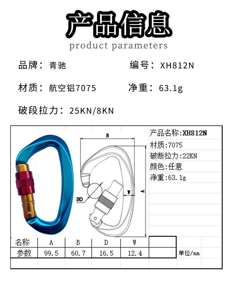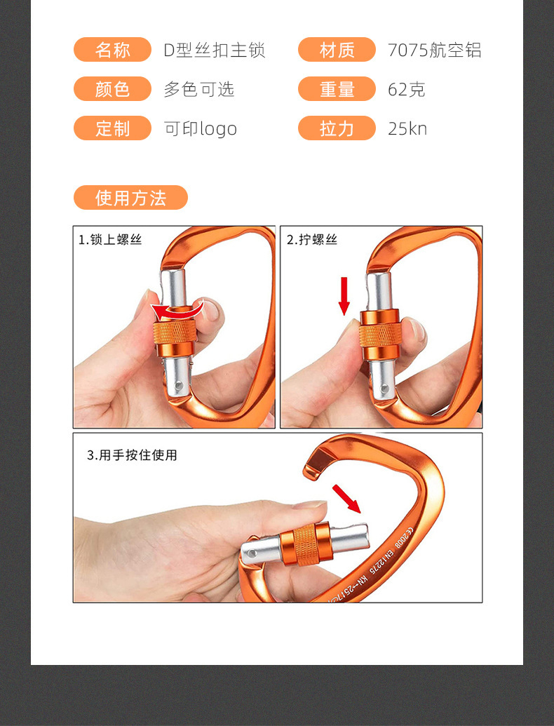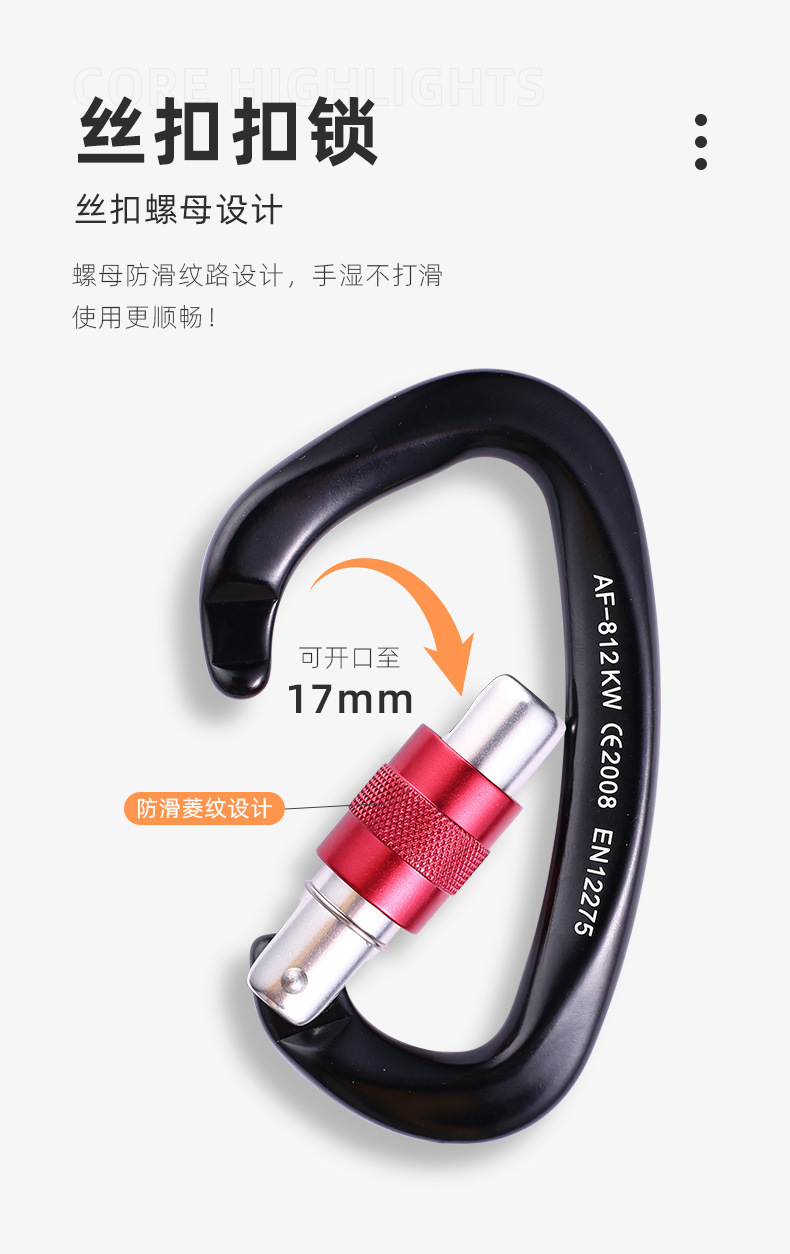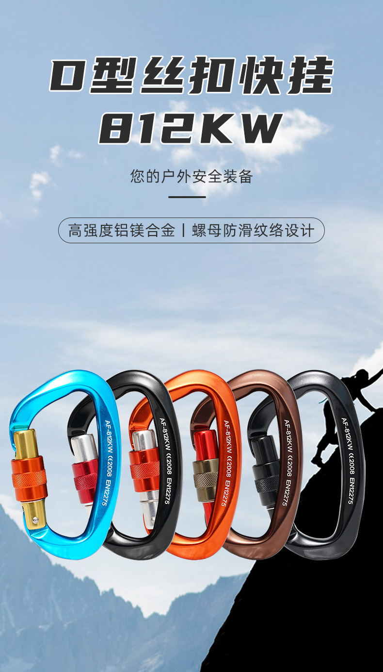 产品名称:户外攀岩登山装备 安全主锁 登山扣 安全钩 丝扣锁812