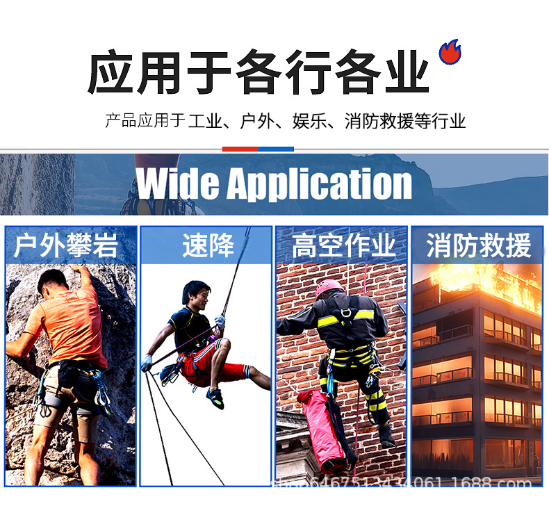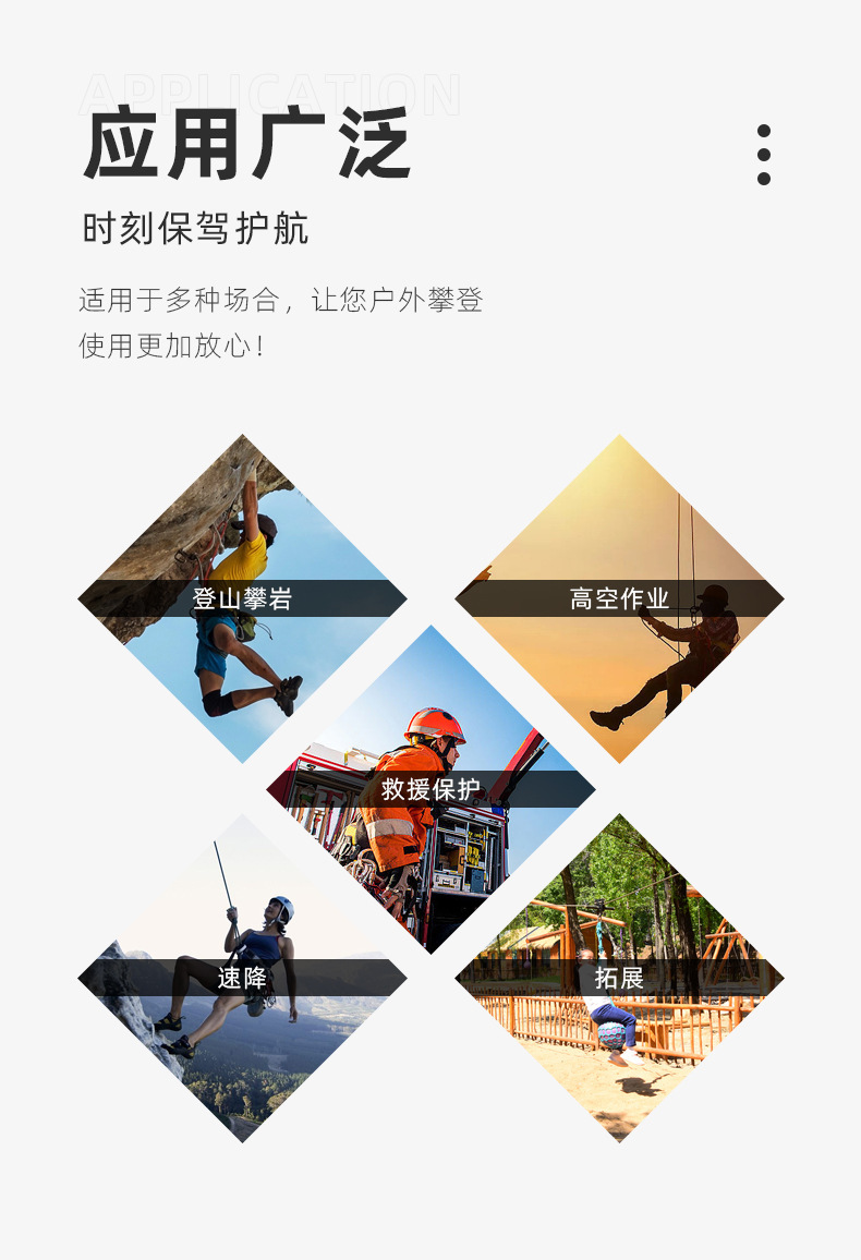 适用范围:攀岩登山 消防救援 高空作业 工程保护探洞 速降
