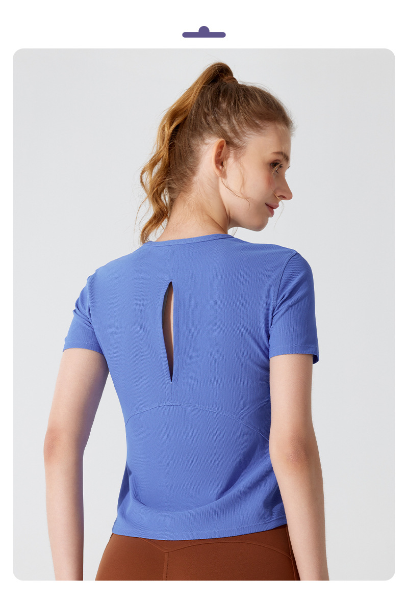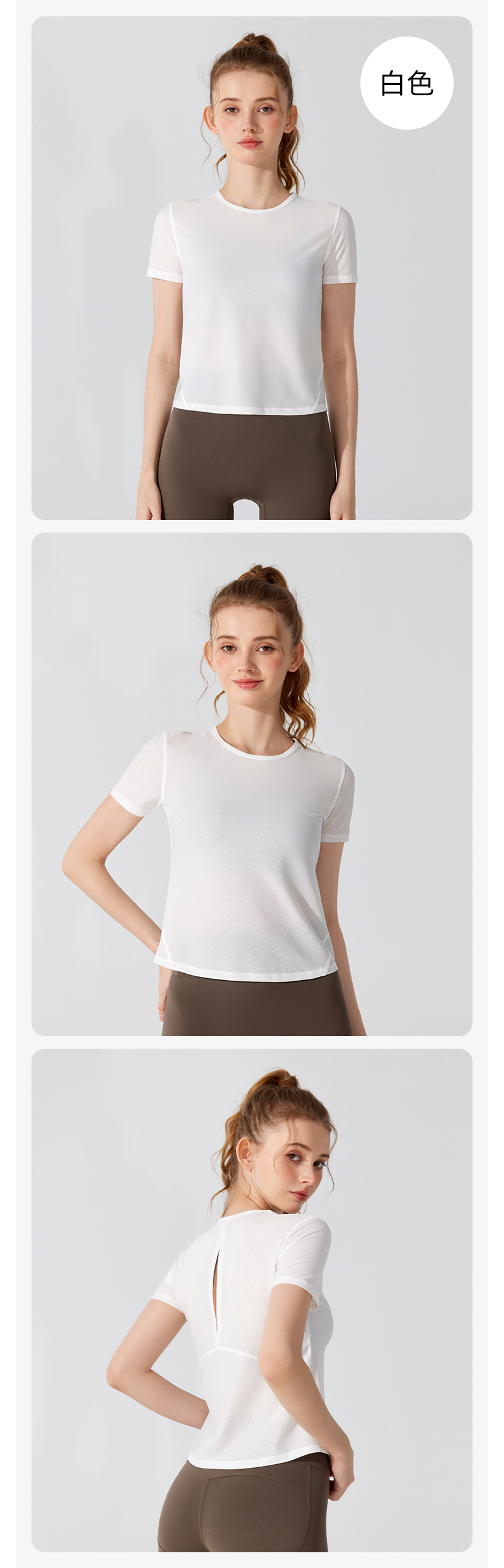 여성용 요가복, 여름 스포츠 상의, 반팔 티셔츠, 러닝, 필라테스 트레이닝복, 백리스 피트니스 커버업