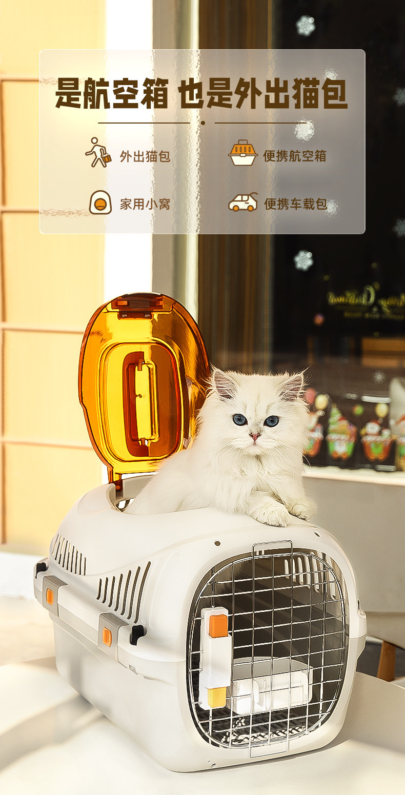 【品名】:HOOPET宠物403款普通航空箱(白+灰)/403TC天窗款航空箱(白+灰)