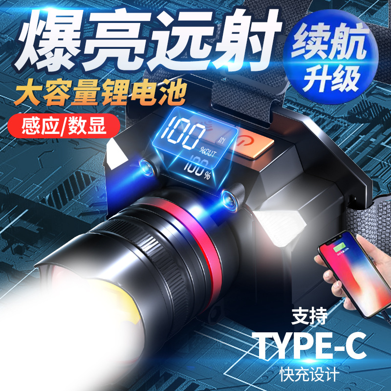 국경 간 헤드 라이트 강한 조명 충전 슈퍼 밝은 야외 디지털 디스플레이 조명 램프 낚시 램프 특수 슈퍼 긴 내구성 유도 광부 램프