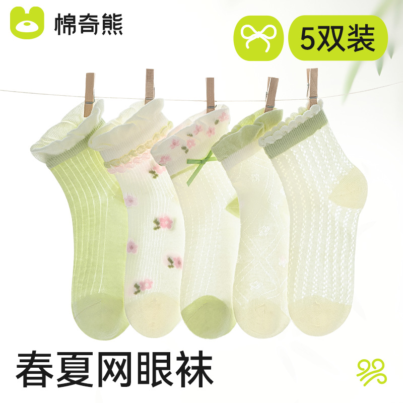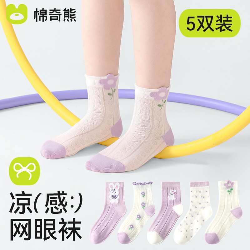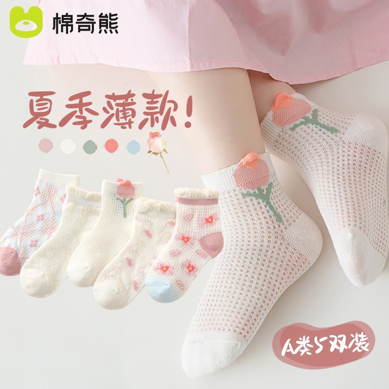 소녀 양말 여름 얇은면 어린이 메쉬 양말 공주 만화 중형 및 큰 어린이 소녀의 통기성 봄과 가을 면화 양말스토어 가기