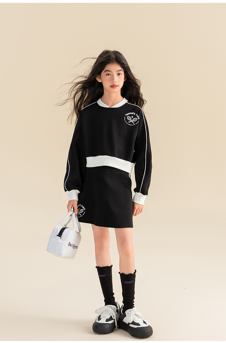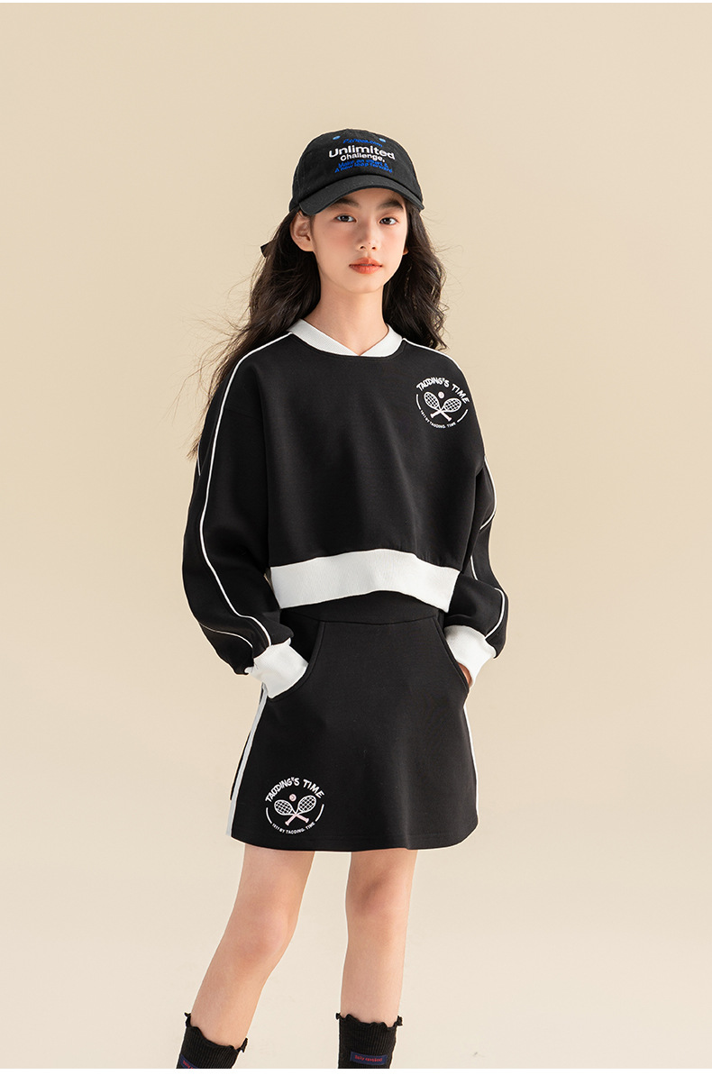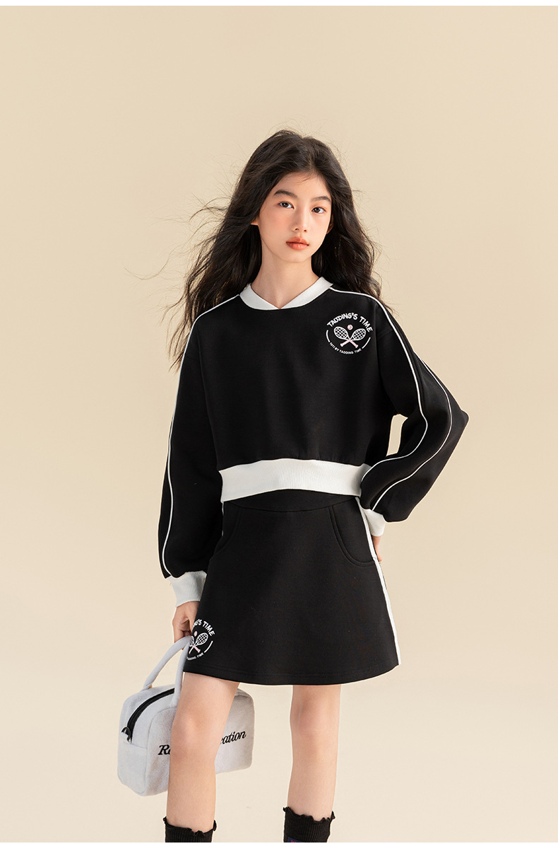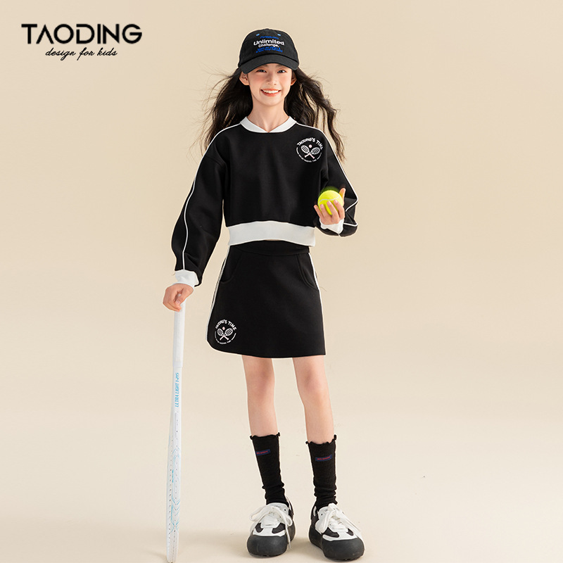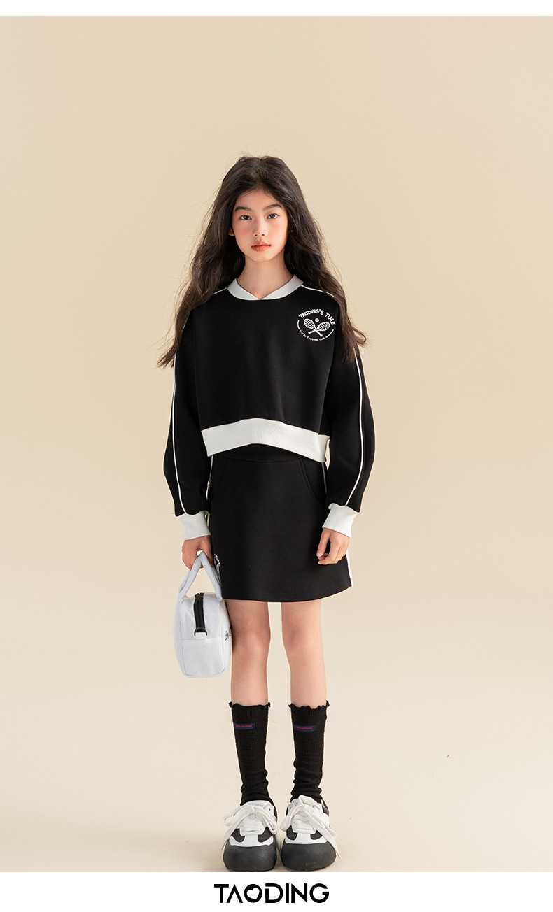 Taodao 소녀 세트 봄과 가을 2024 새로운 미디어와 큰 어린이 간단한 스포츠 스웨터 스커트 투피스 세트