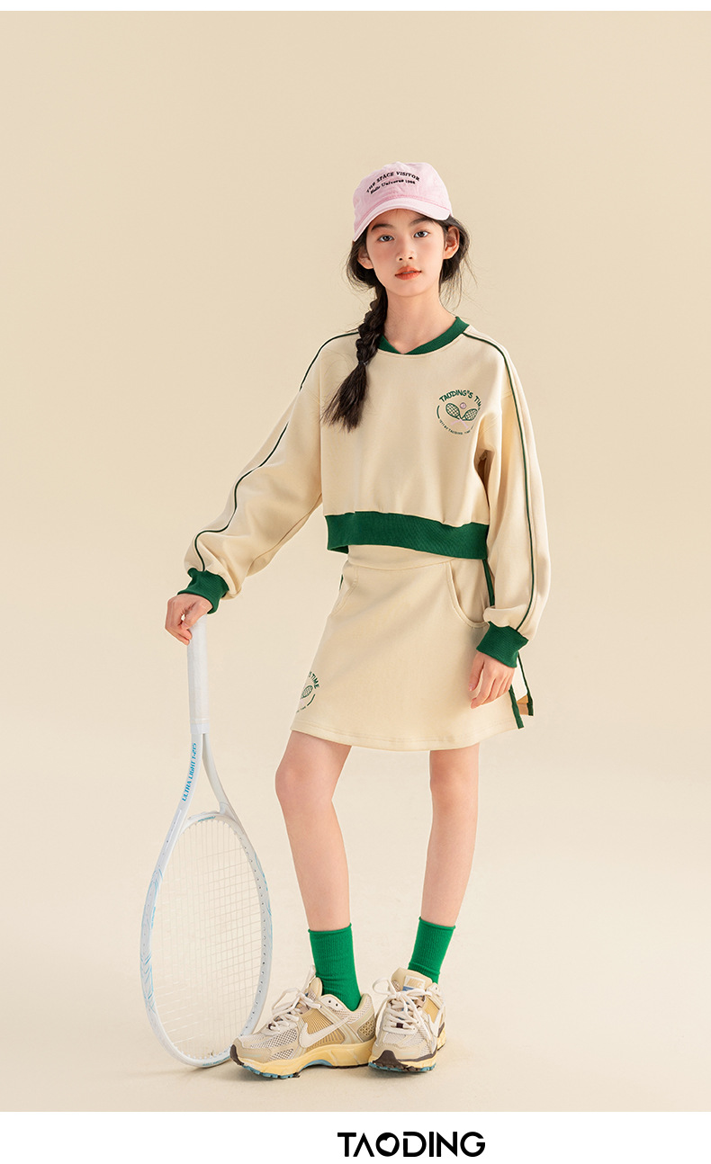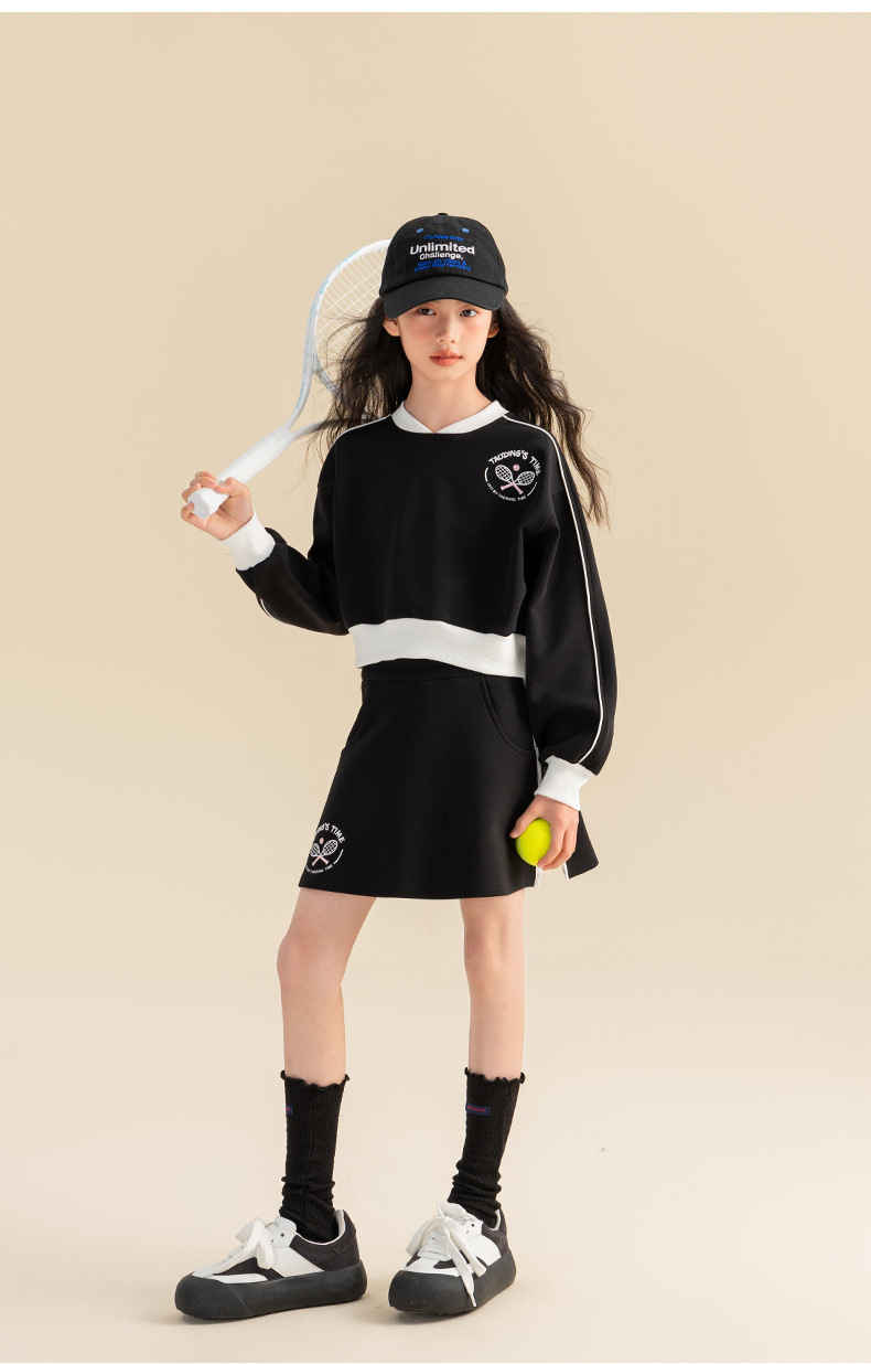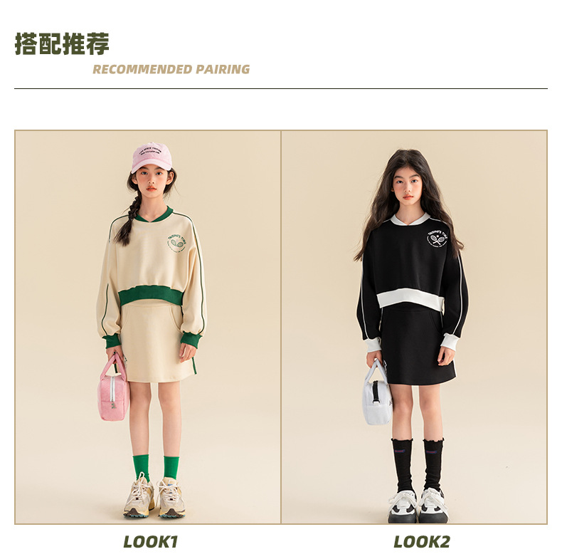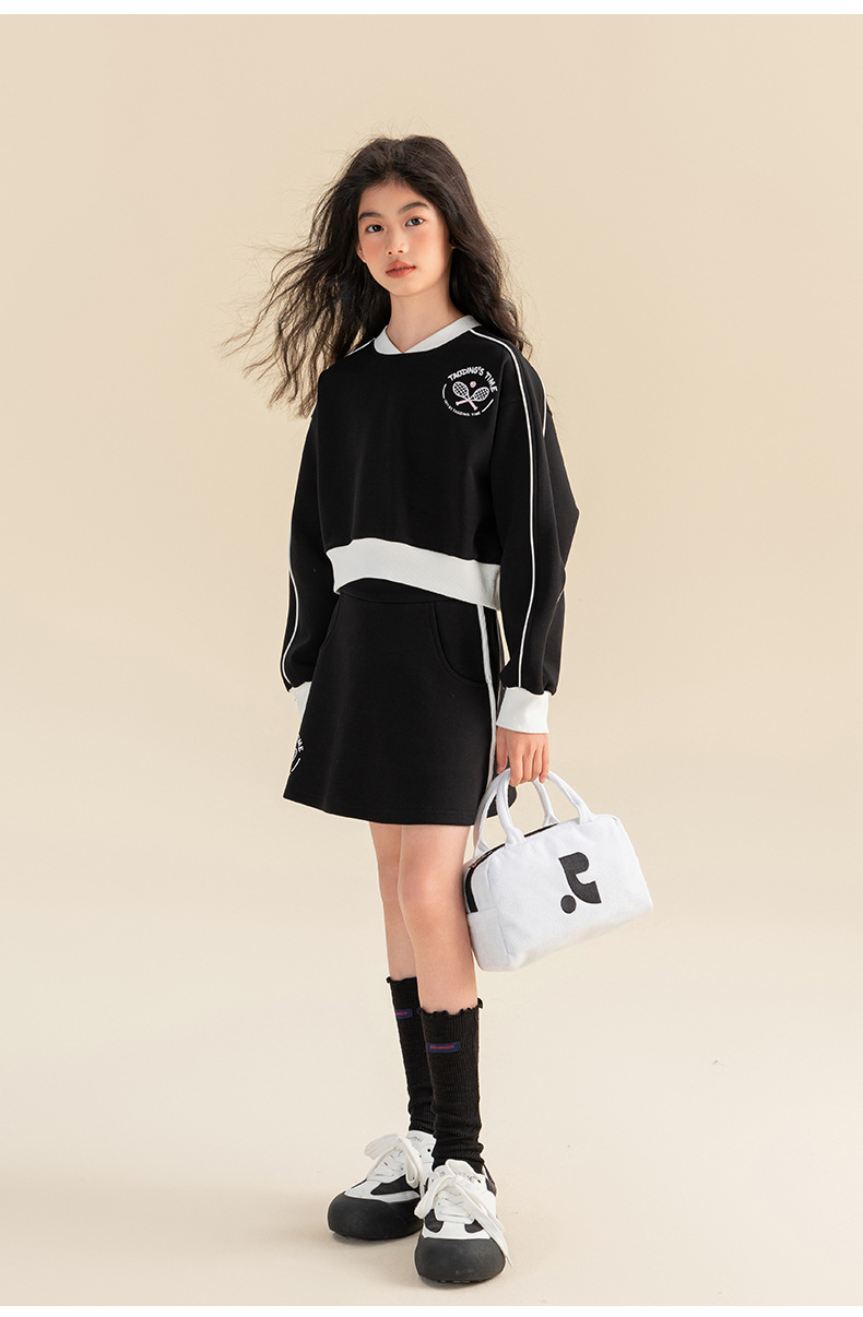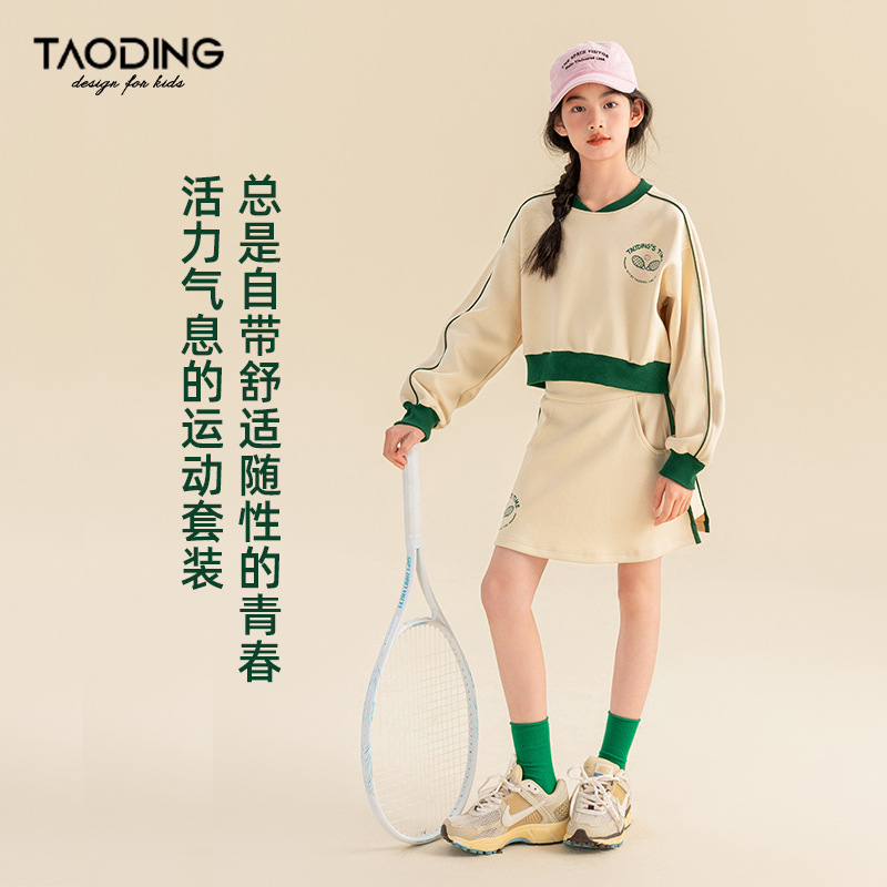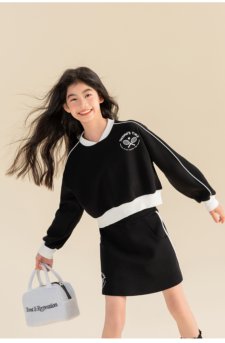 Taodao 소녀 세트 봄과 가을 2024 새로운 미디어와 큰 어린이 간단한 스포츠 스웨터 스커트 투피스 세트