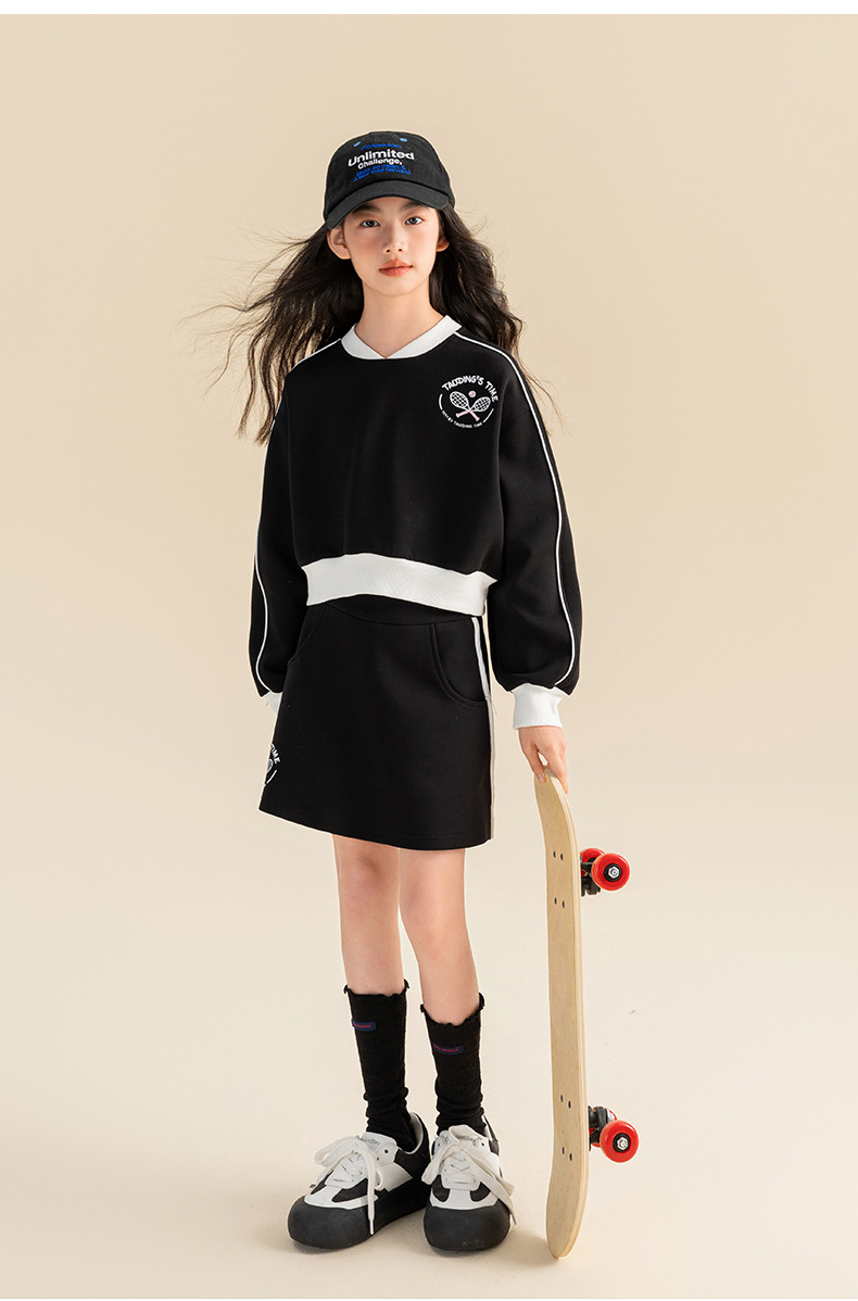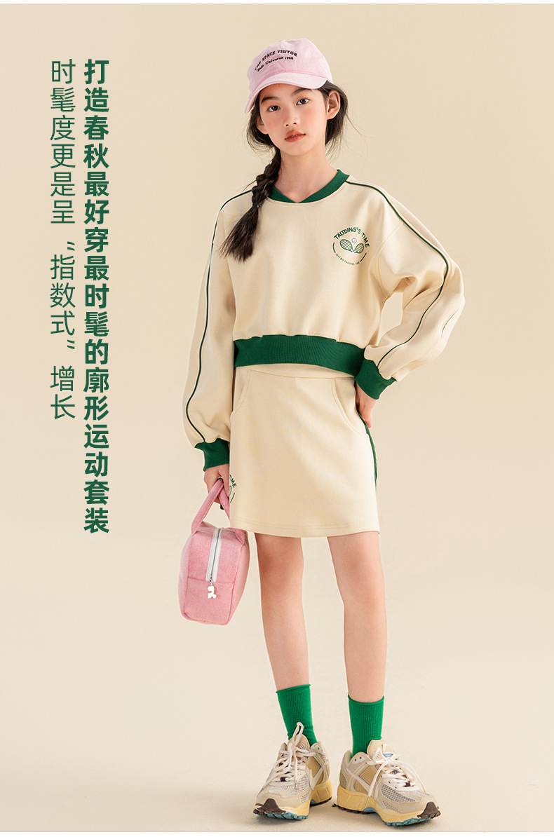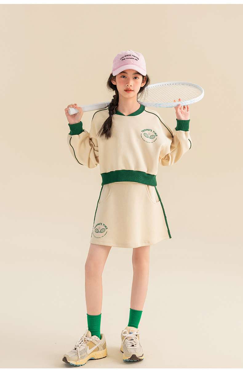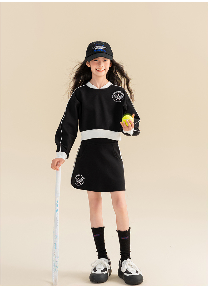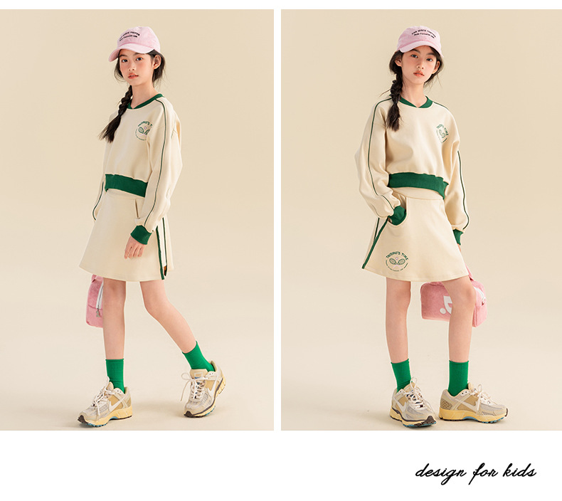 Taodao 소녀 세트 봄과 가을 2024 새로운 미디어와 큰 어린이 간단한 스포츠 스웨터 스커트 투피스 세트