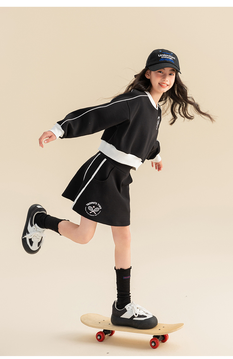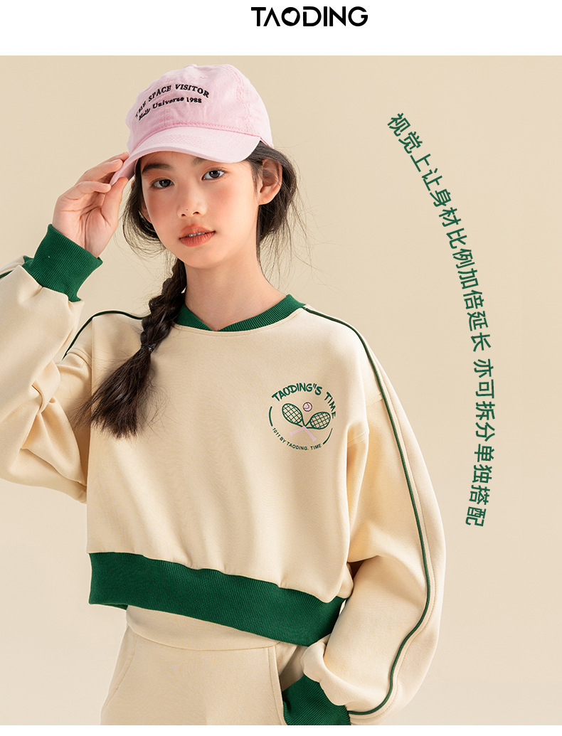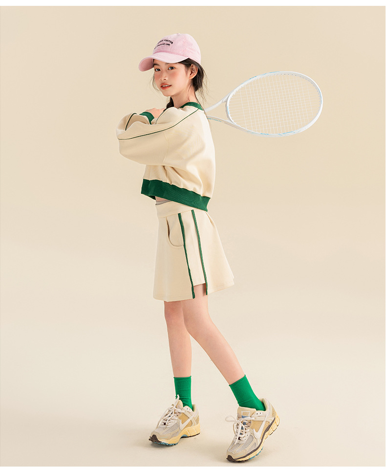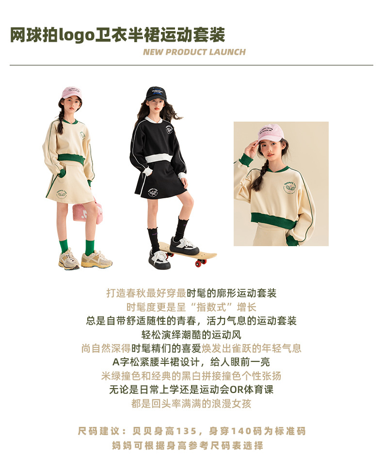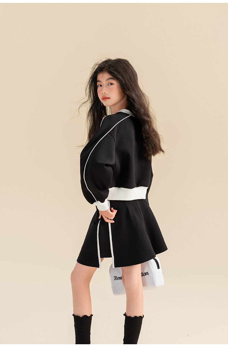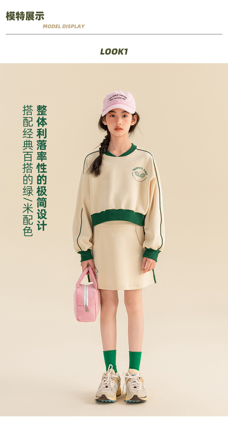 Taodao 소녀 세트 봄과 가을 2024 새로운 미디어와 큰 어린이 간단한 스포츠 스웨터 스커트 투피스 세트