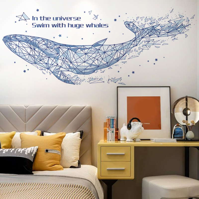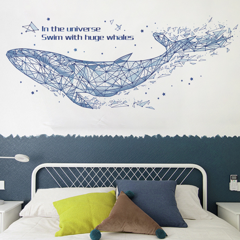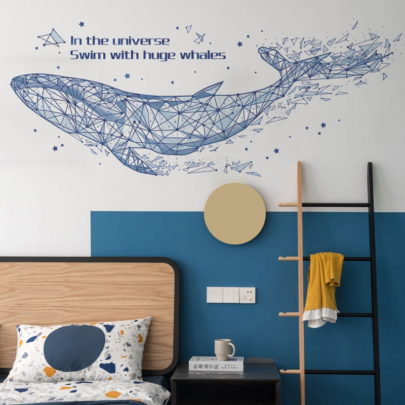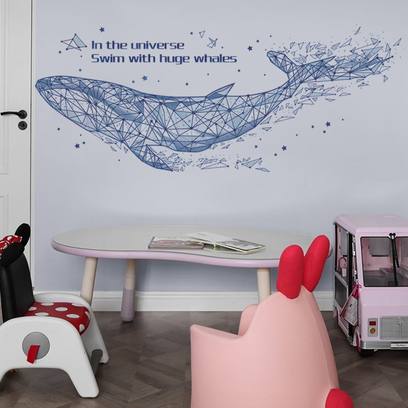다채로운 CH39059AB 기하학적 고래 거실 침실 배경 벽 스티커 어린이 방 창조적 인 벽 스티커 고래스토어 가기