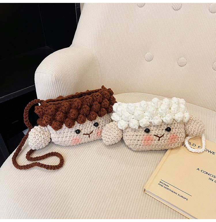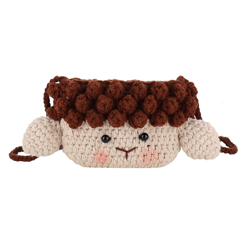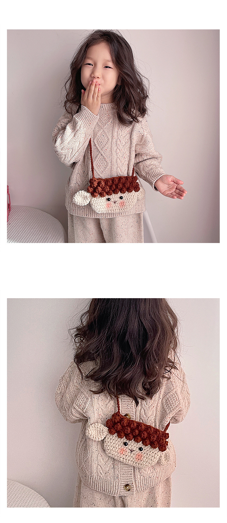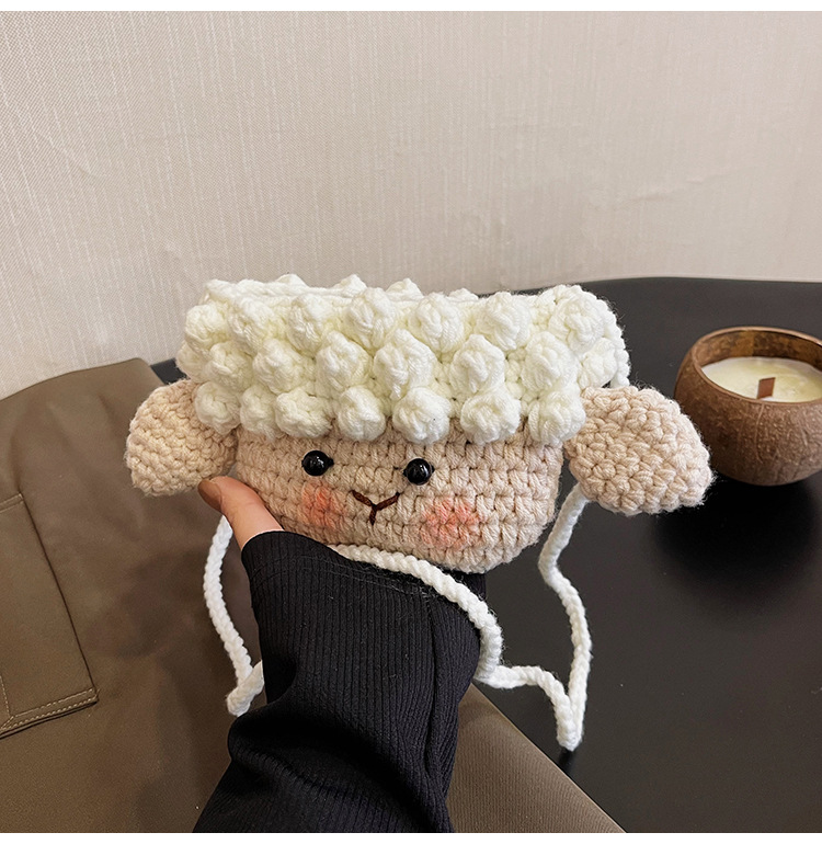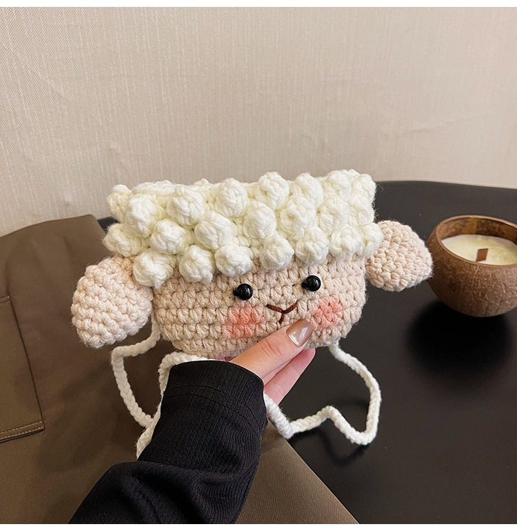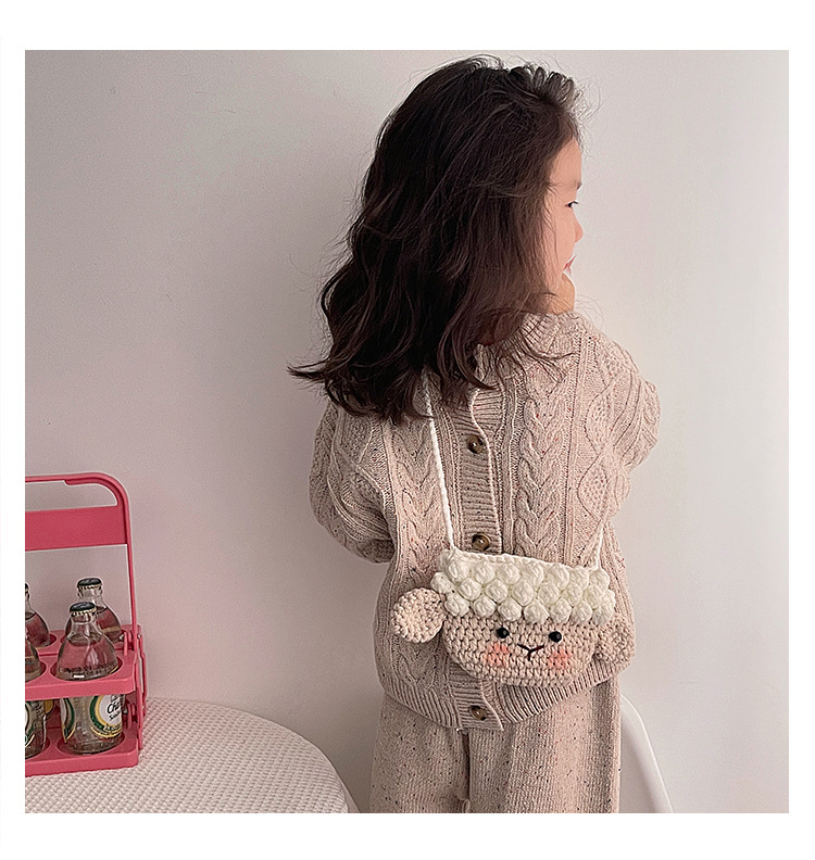 한국 스타일 귀여운 아기 동전 지갑 수제 크로 셰 뜨개질 만화 양고기 추악한 귀여운 대비 색상 어린이 부모-자식 작은 어깨 가방 완제품스토어 가기