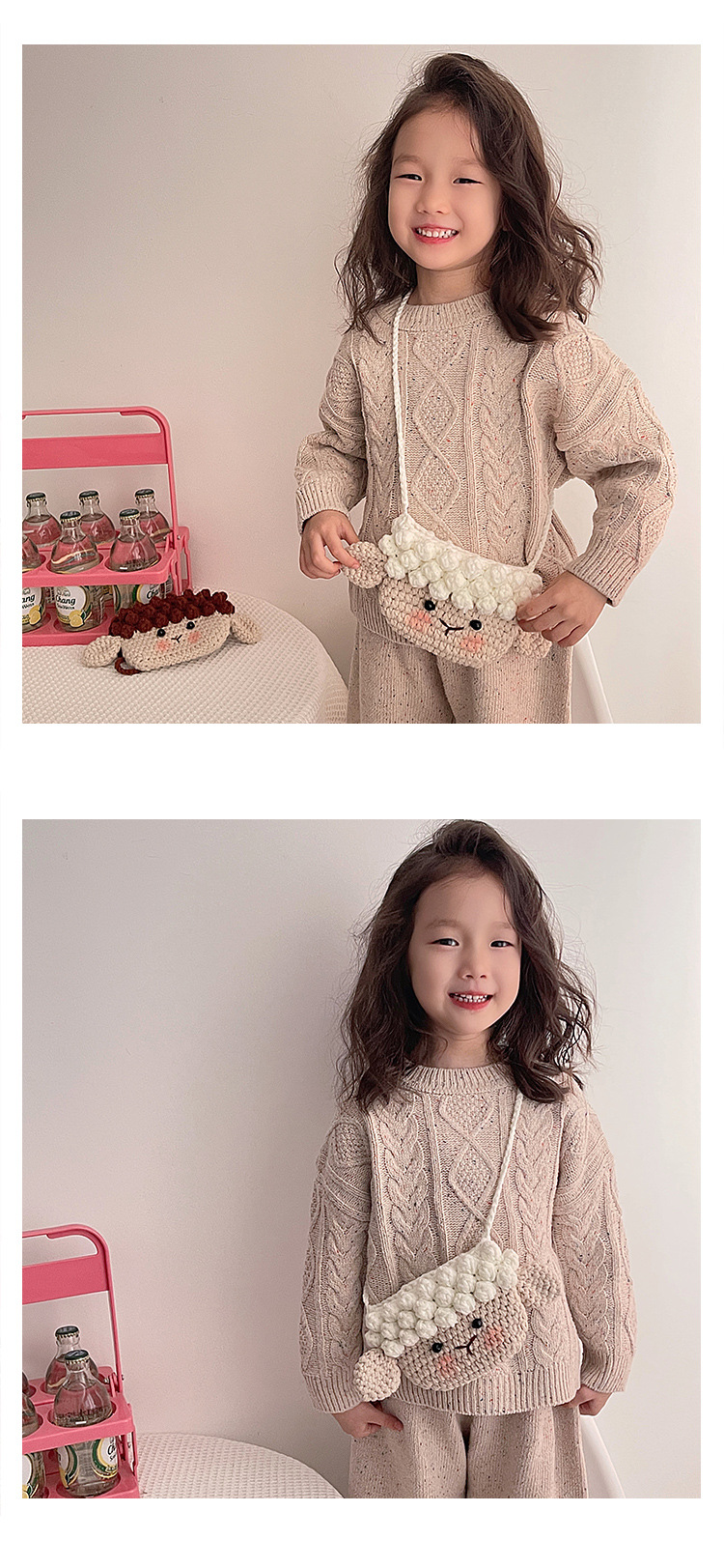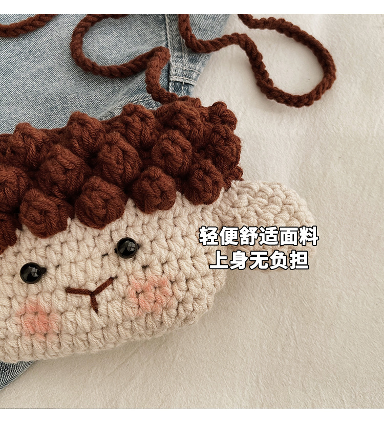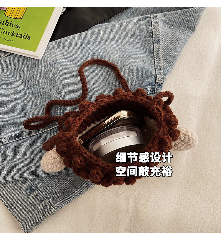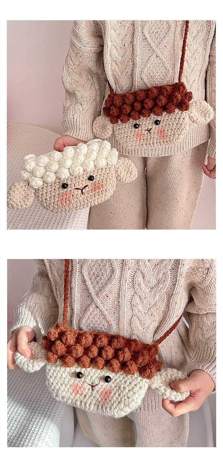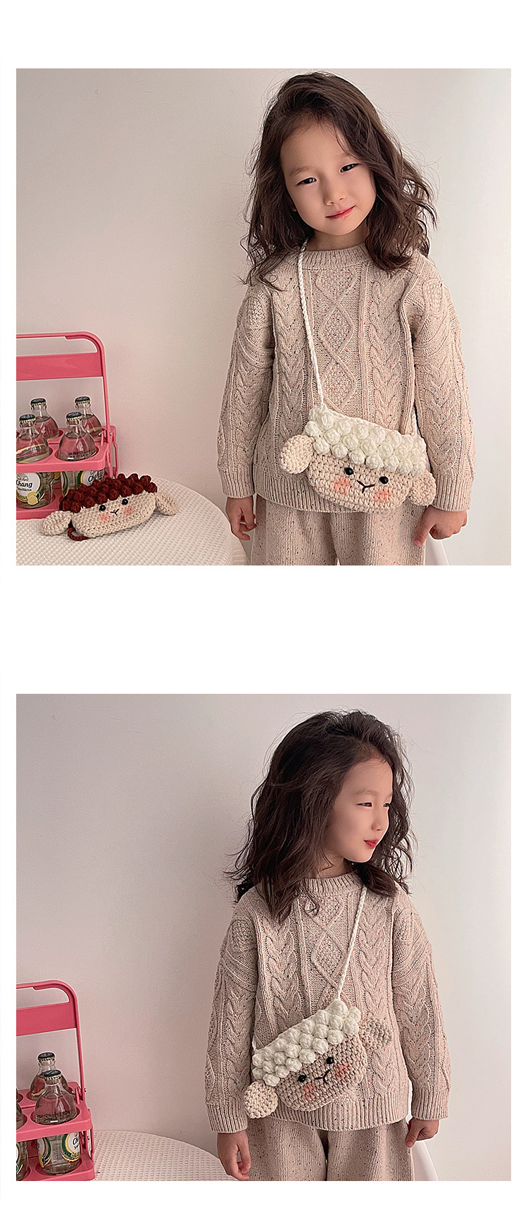 한국 스타일 귀여운 아기 동전 지갑 수제 크로 셰 뜨개질 만화 양고기 추악한 귀여운 대비 색상 어린이 부모-자식 작은 어깨 가방 완제품스토어 가기