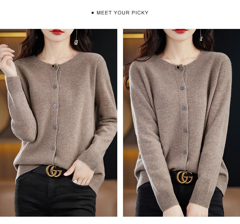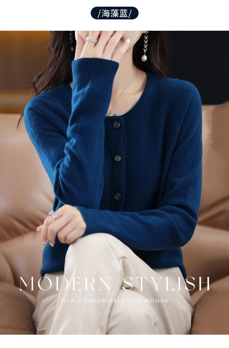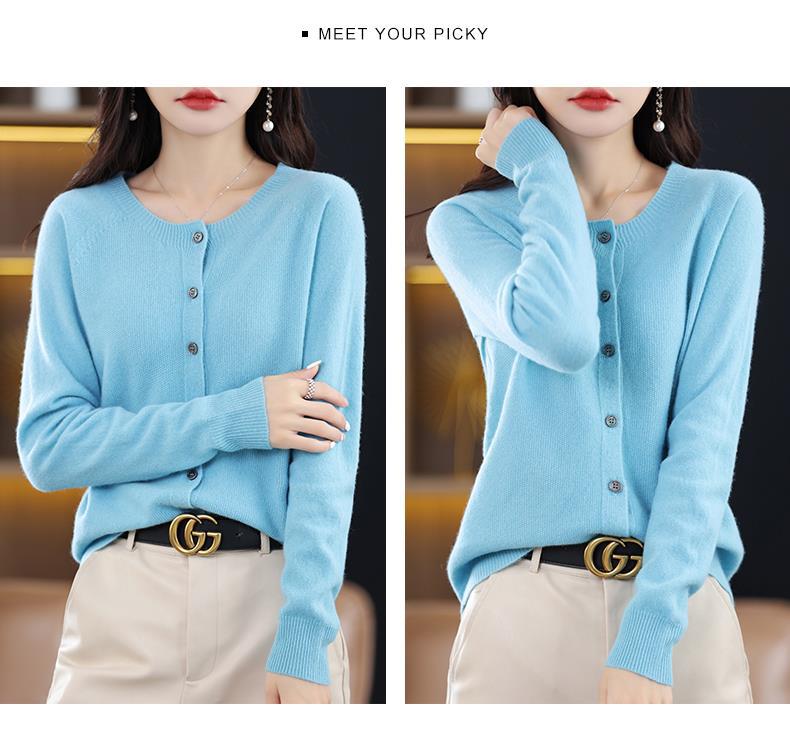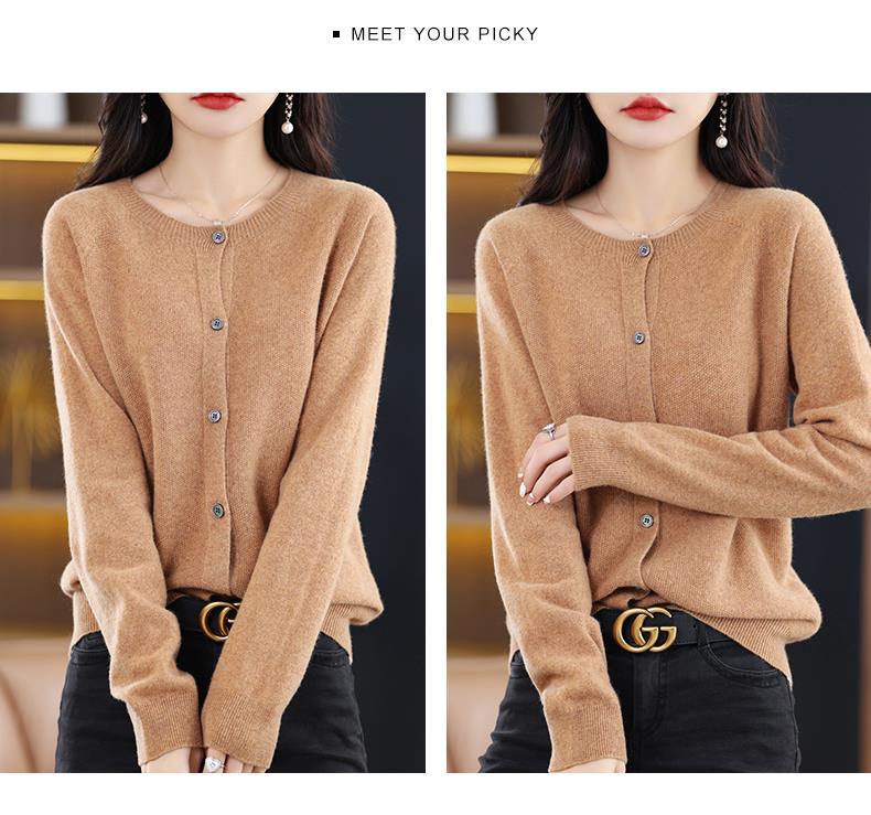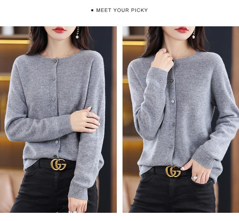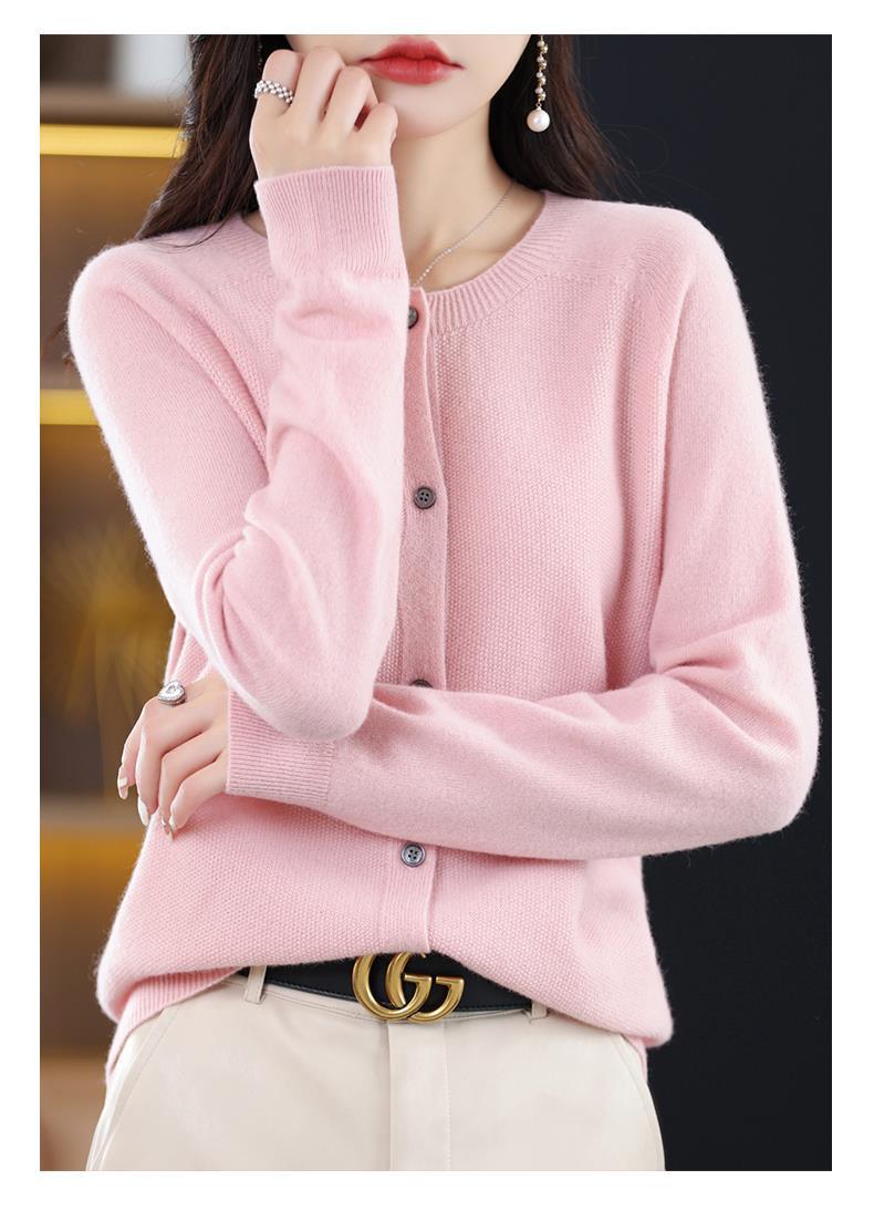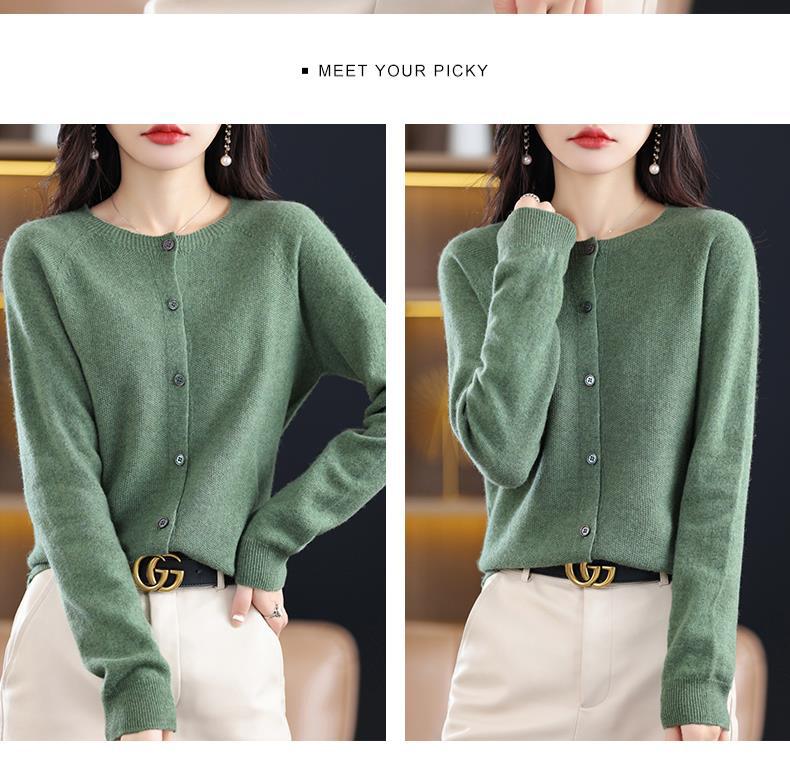 봄과 가을 새로운 세련된 부드러운 둥근 목 니트 카디건 여성용 오스만투스 바늘 베이스 긴 소매 느슨한 한국식 스웨터 코트