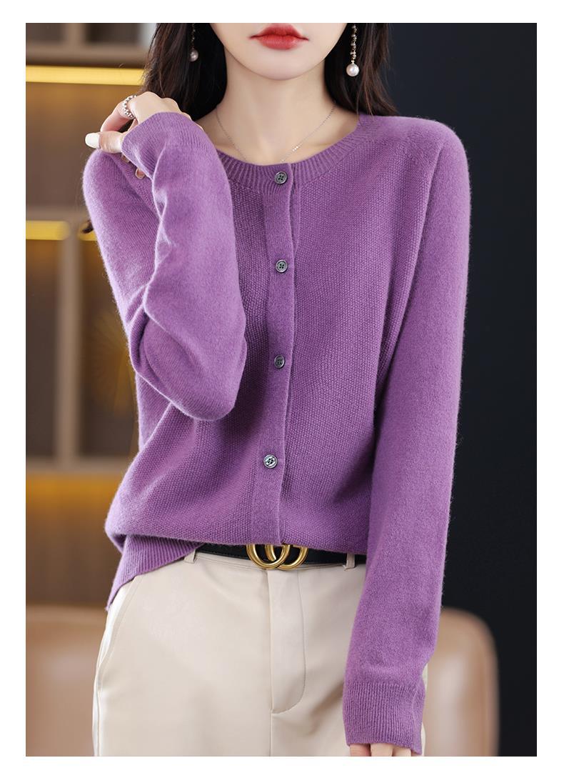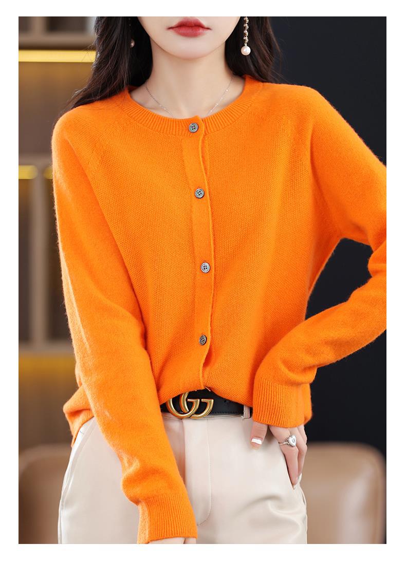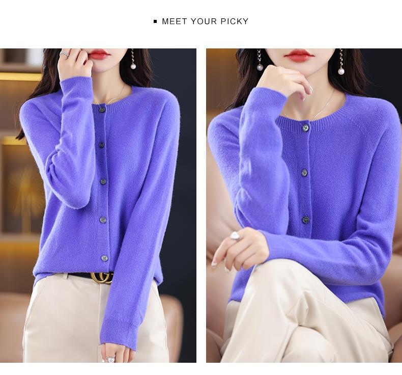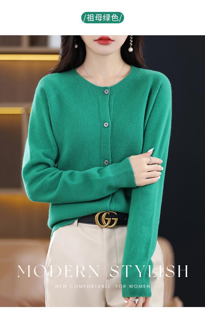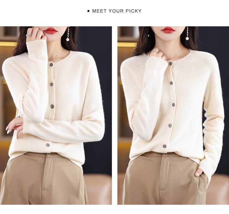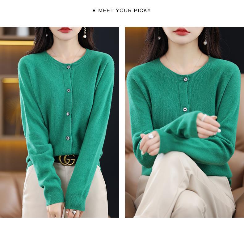 봄과 가을 새로운 세련된 부드러운 둥근 목 니트 카디건 여성용 오스만투스 바늘 베이스 긴 소매 느슨한 한국식 스웨터 코트
