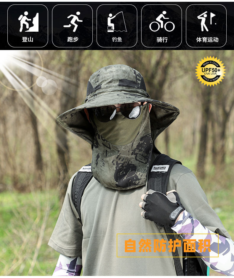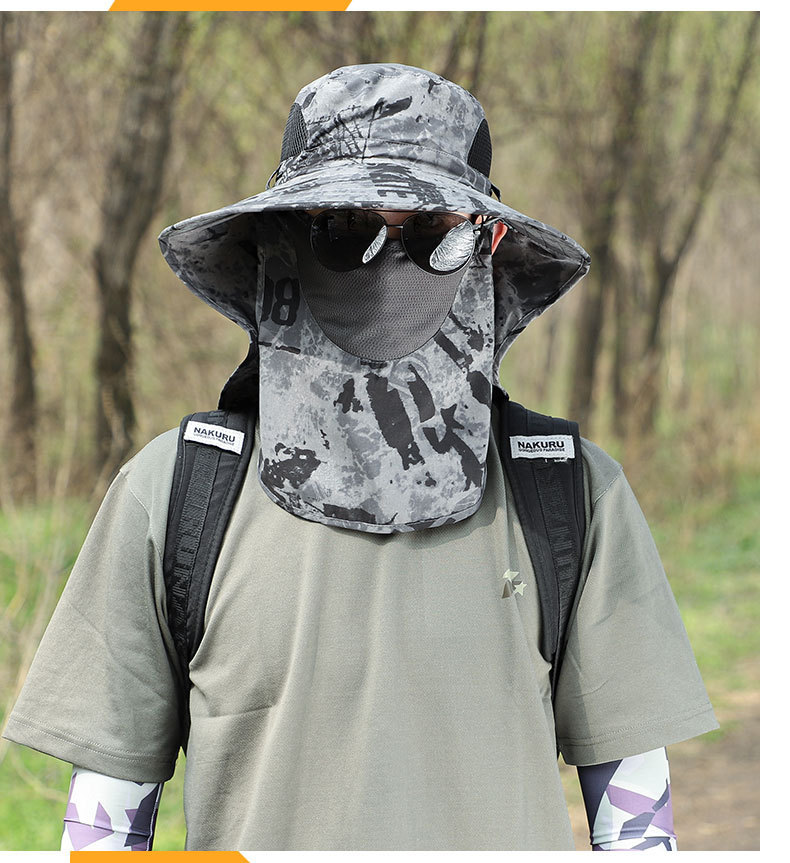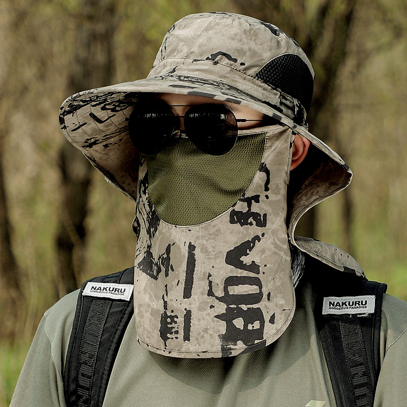 모자 남자의 큰 목도리 목 보호 커버 얼굴 태양 모자 여름 모자 야외 하이킹 차 따기 위장 태양 보호 모자스토어 가기