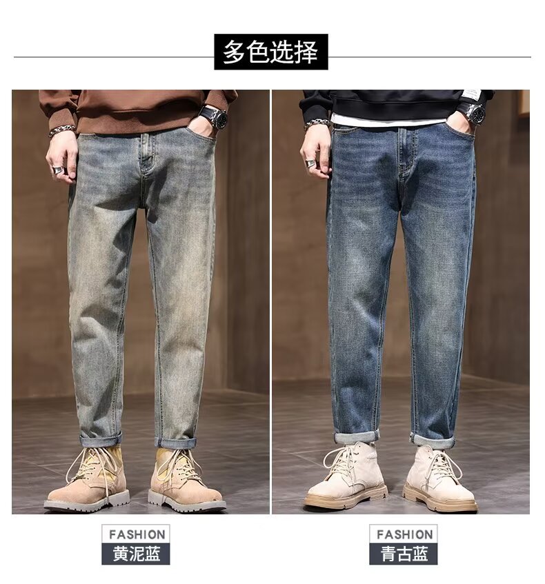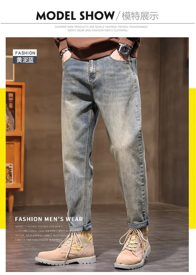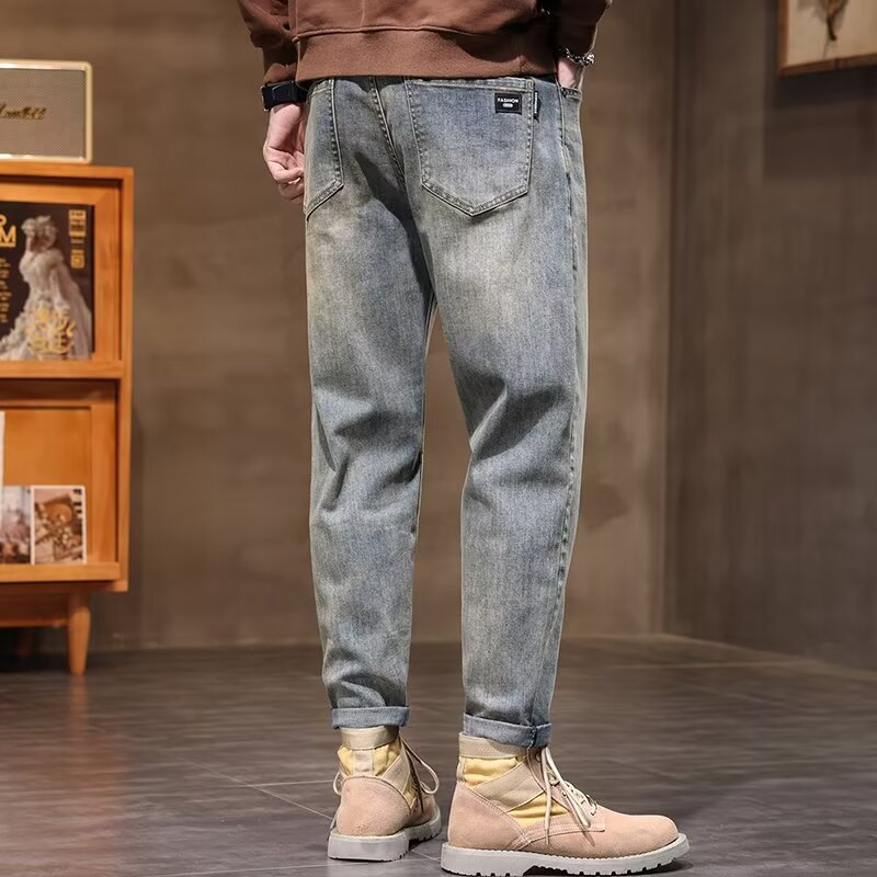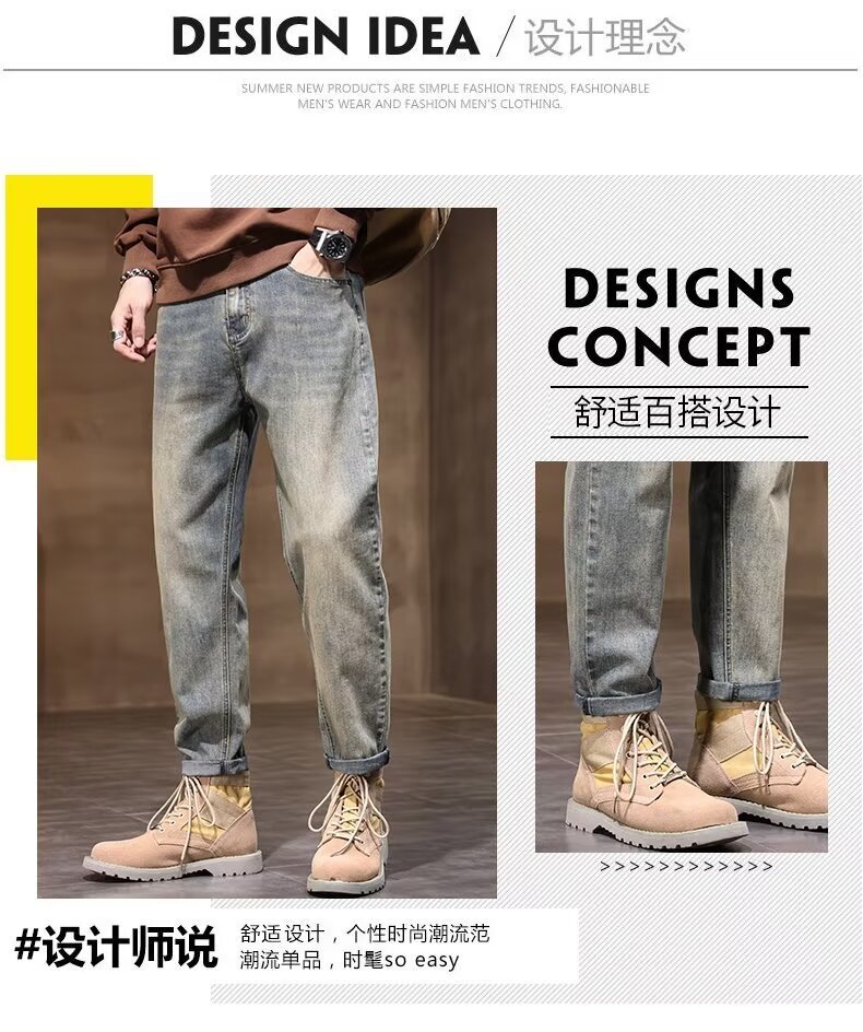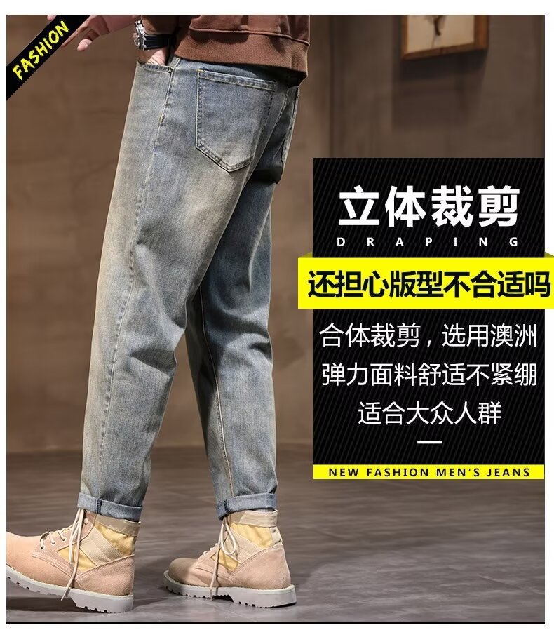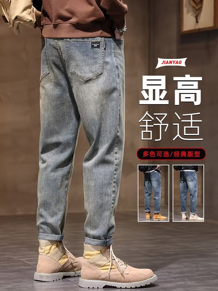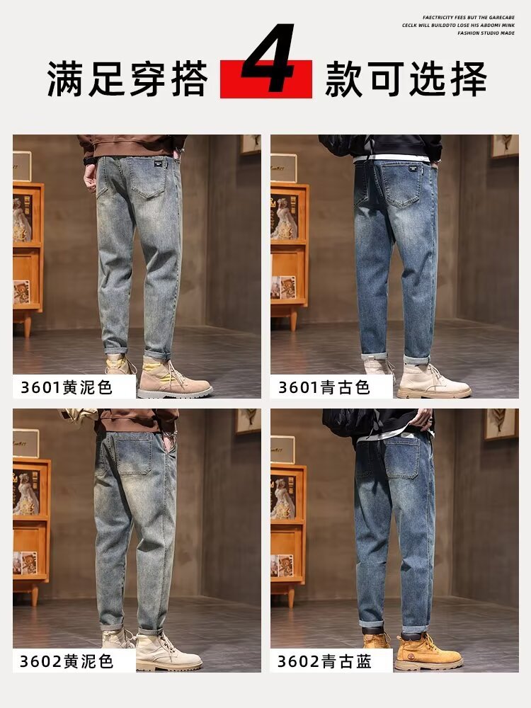미국식 빈티지 씻은 노란색 진흙 청바지 남성용 봄과 가을 다목적 고급 고민 핏 남성용 캐주얼 바지스토어 가기