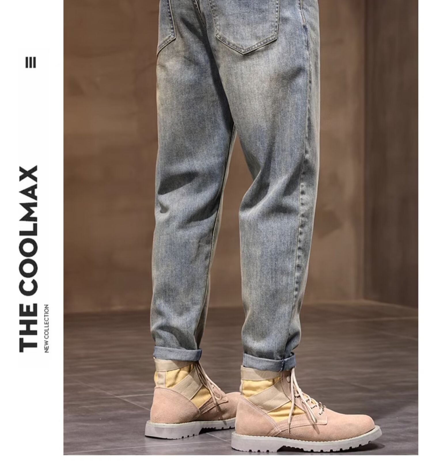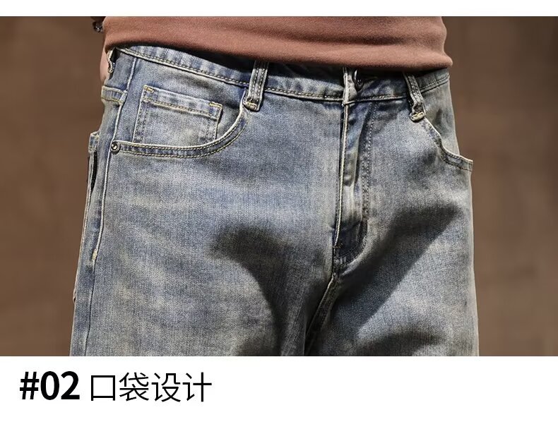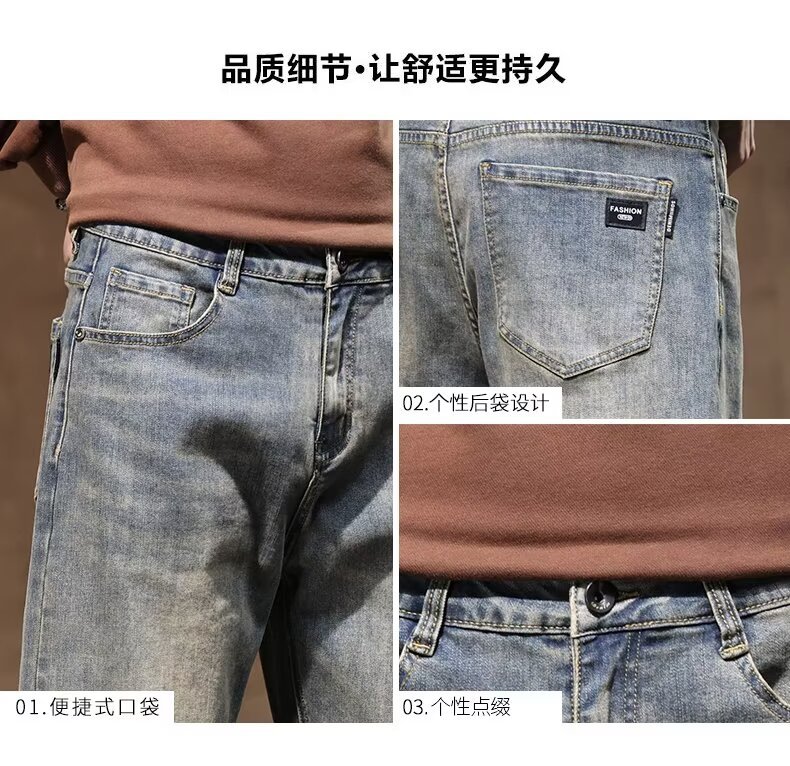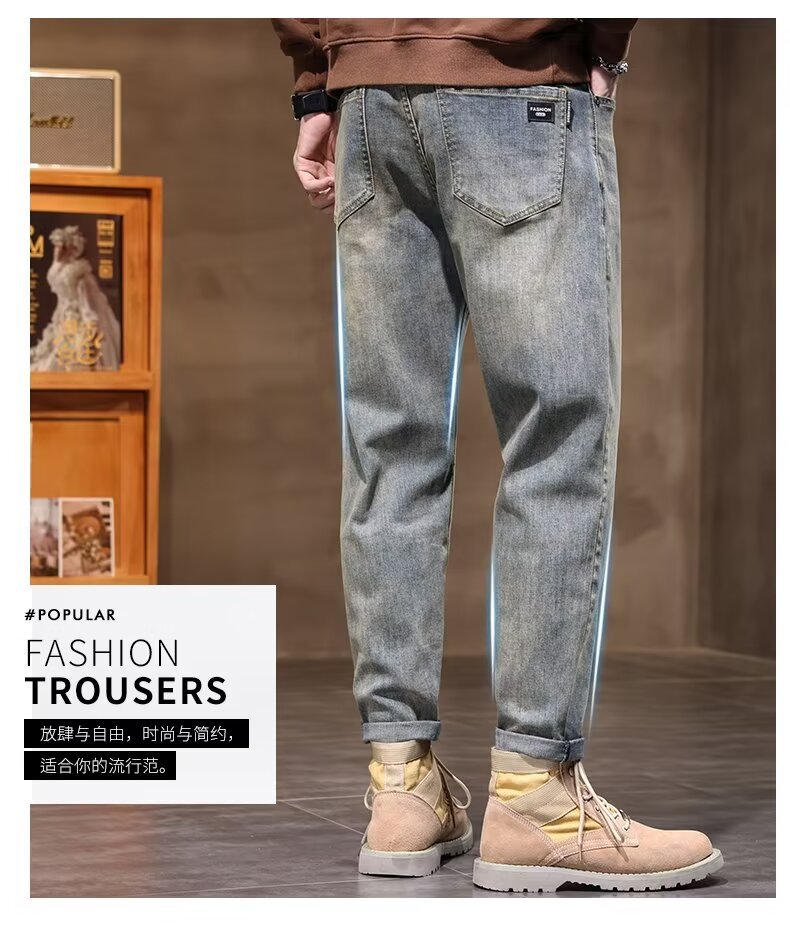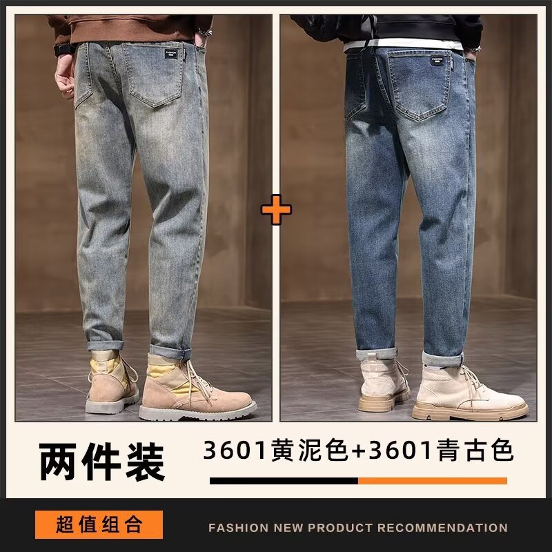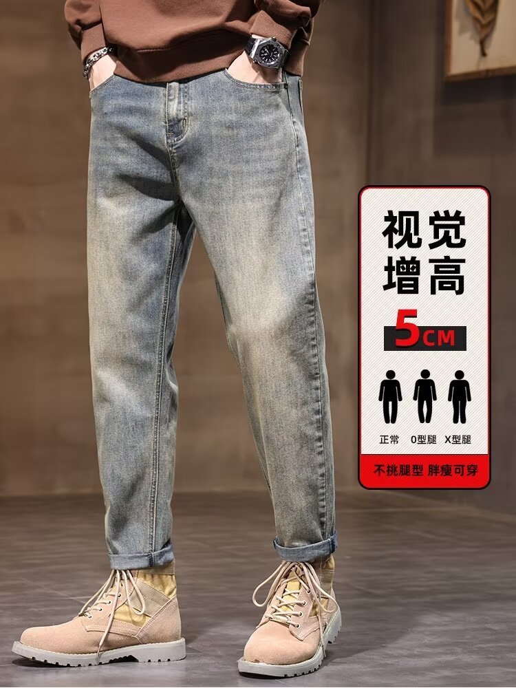 미국식 빈티지 씻은 노란색 진흙 청바지 남성용 봄과 가을 다목적 고급 고민 핏 남성용 캐주얼 바지스토어 가기