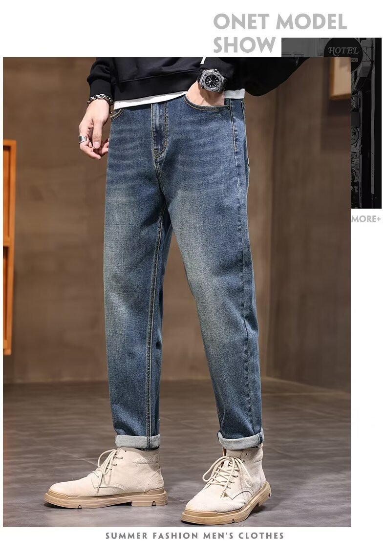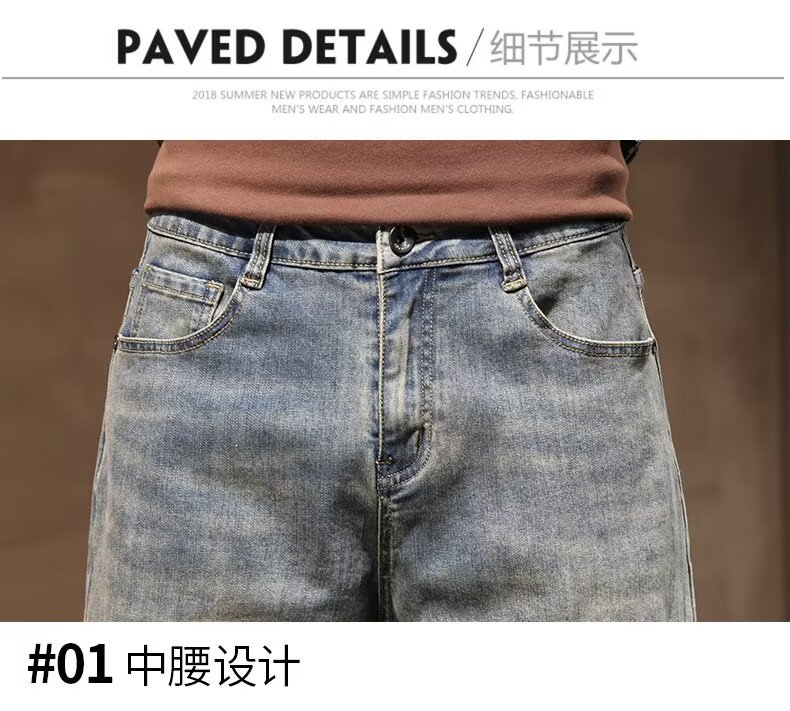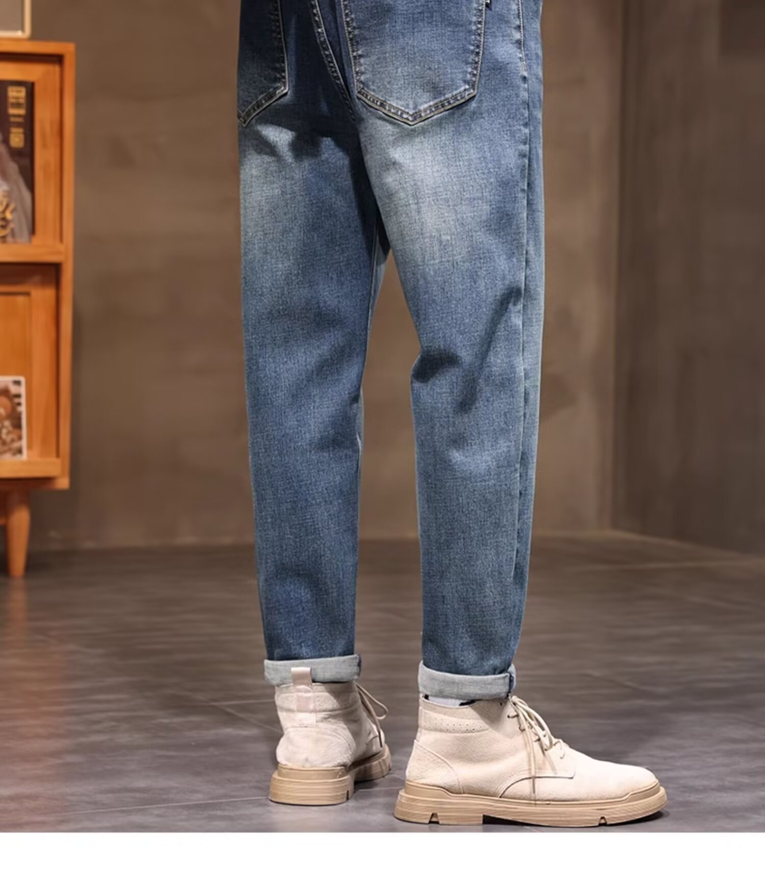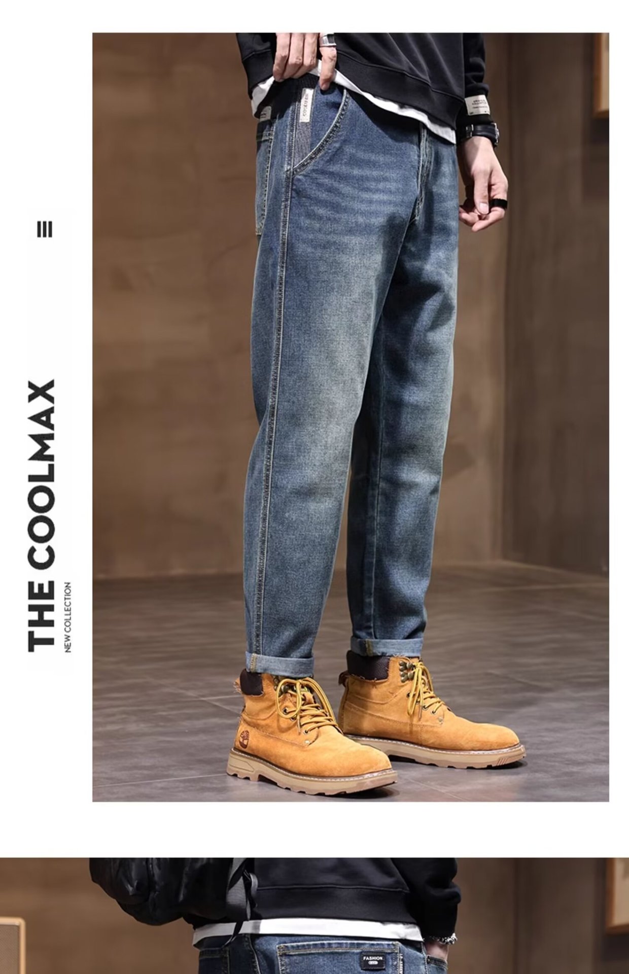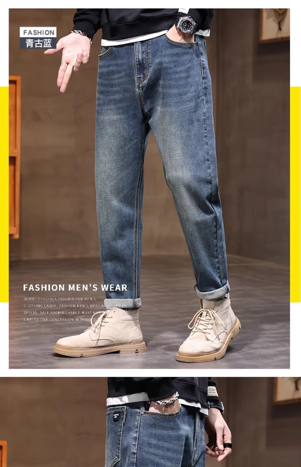 미국식 빈티지 씻은 노란색 진흙 청바지 남성용 봄과 가을 다목적 고급 고민 핏 남성용 캐주얼 바지스토어 가기
