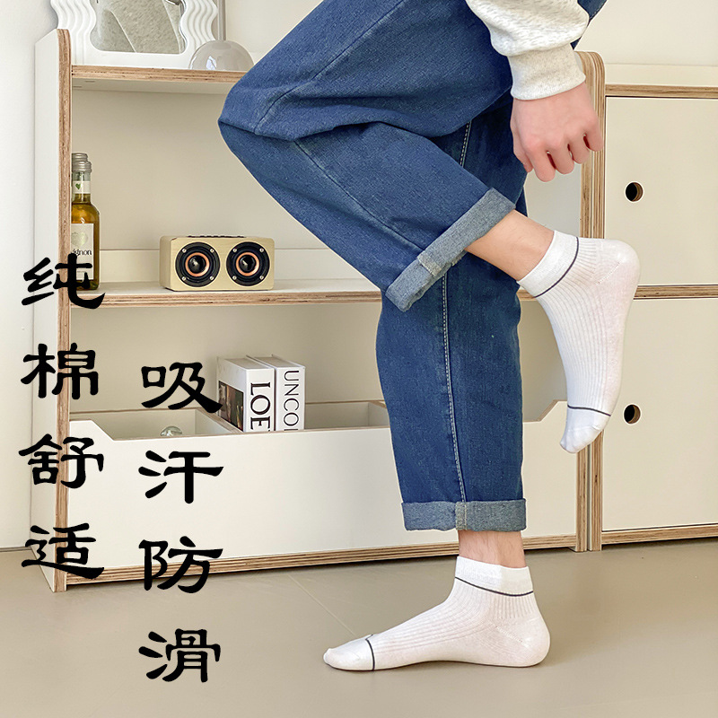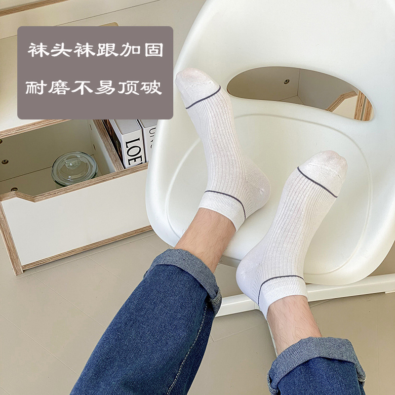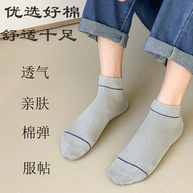 봄과 여름 얇은 순면 땀 흡수성 비 냄새 나는 발 양말 남성 스포츠 통기성 중간 짧은 양말 단색 줄무늬 캐주얼 양말스토어 가기