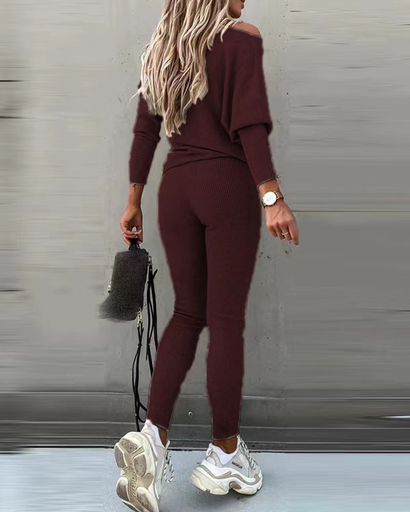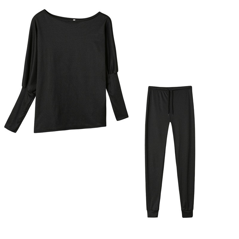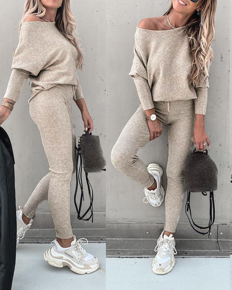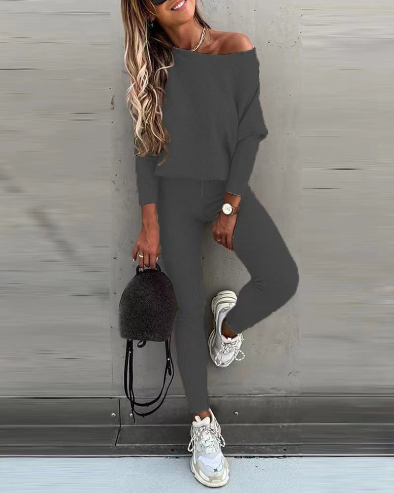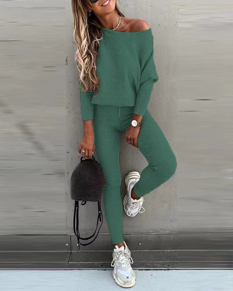 2024 유럽과 미국의 대외 무역 뜨거운 판매 단색 패션 캐주얼 레이스 업 대각선 어깨 스포츠 바지 긴 세트 여성