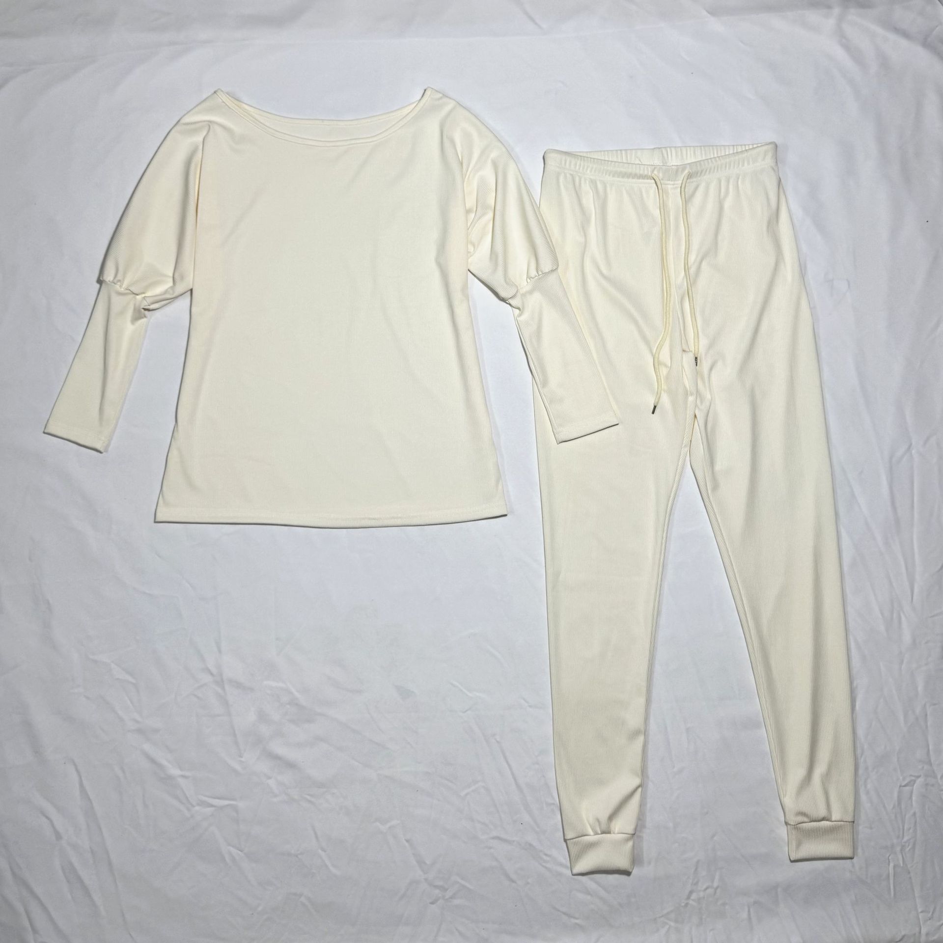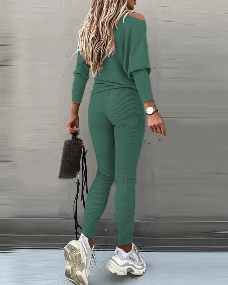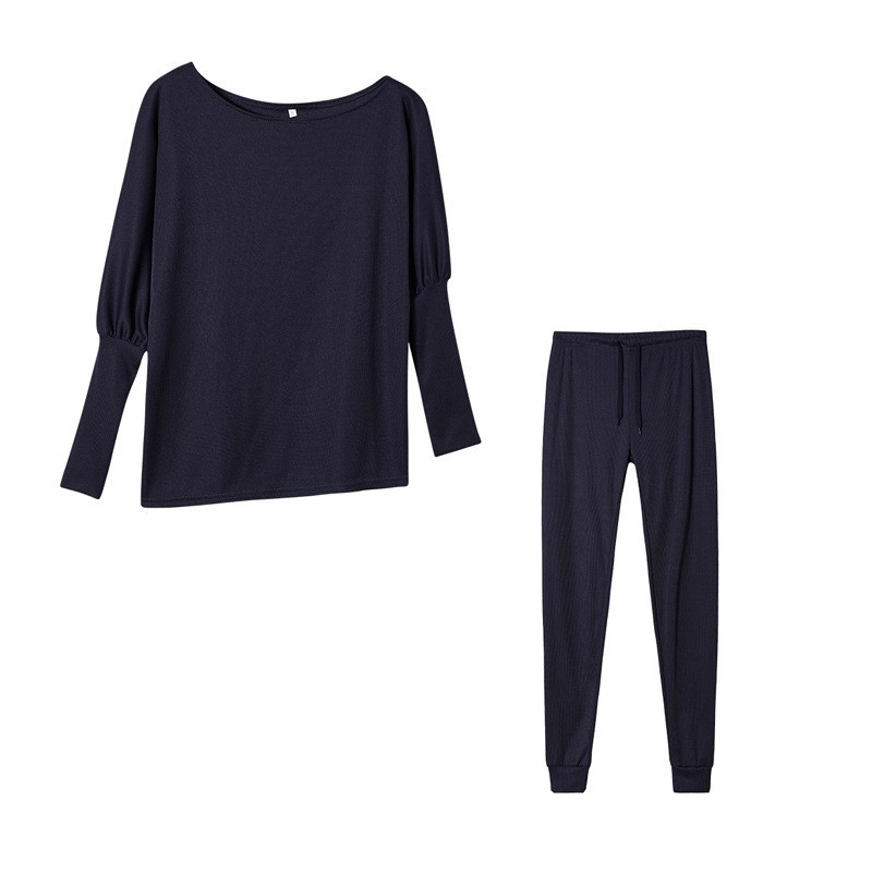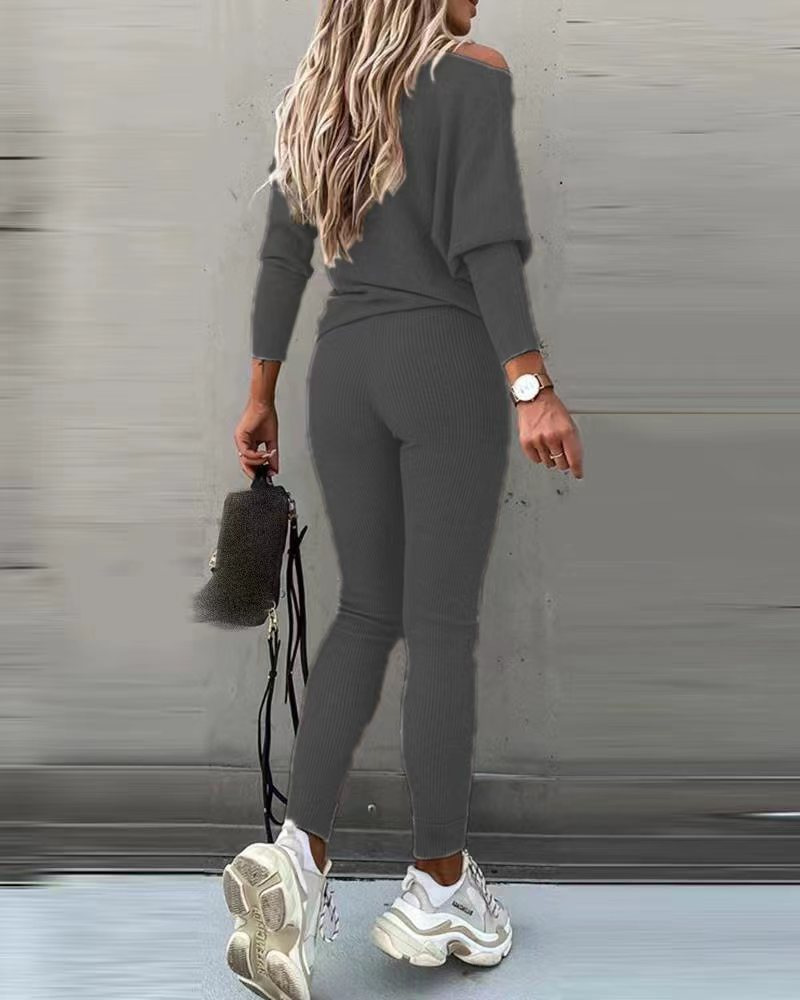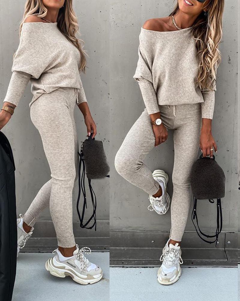 2024 유럽과 미국의 대외 무역 뜨거운 판매 단색 패션 캐주얼 레이스 업 대각선 어깨 스포츠 바지 긴 세트 여성