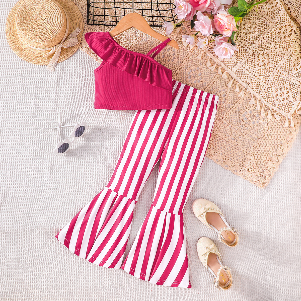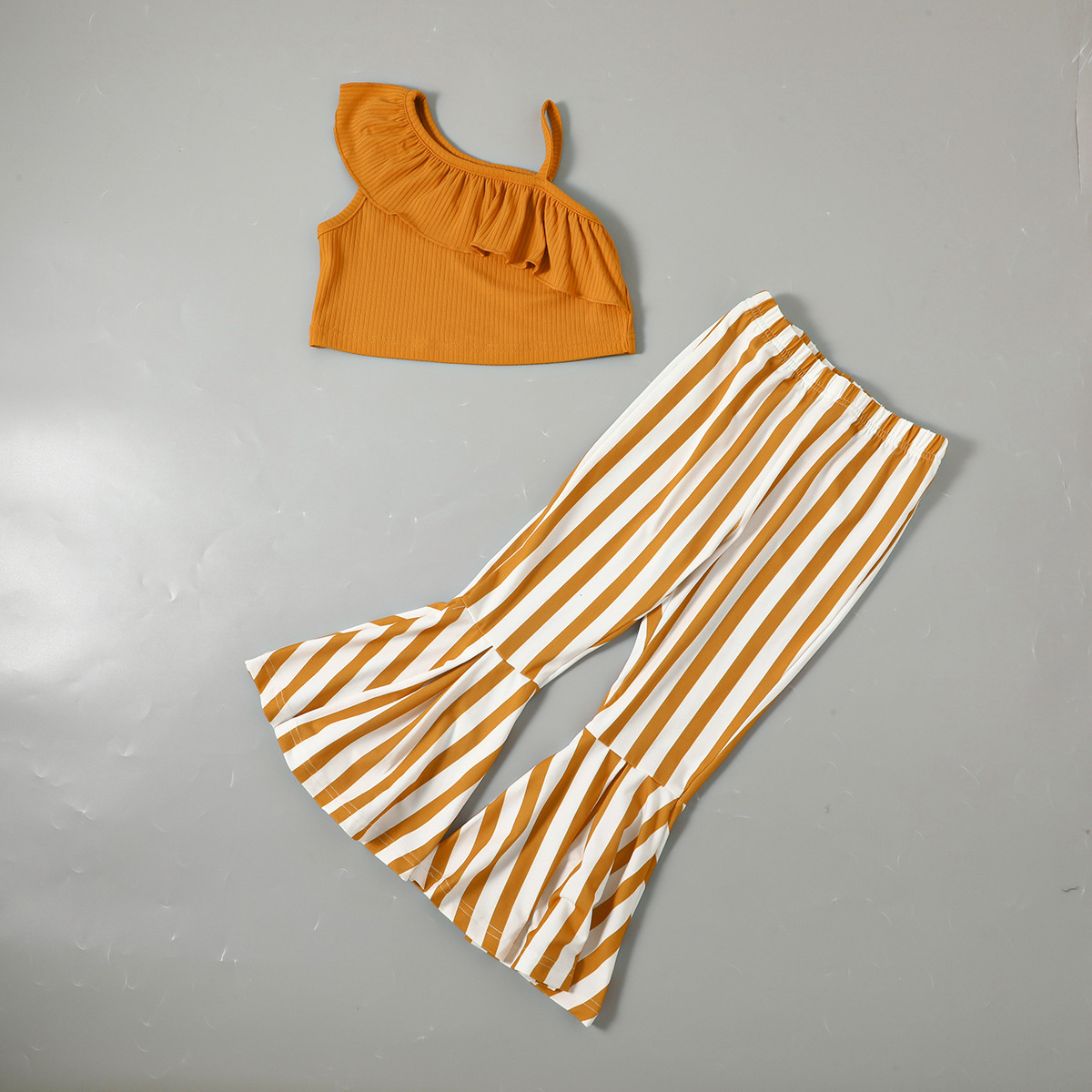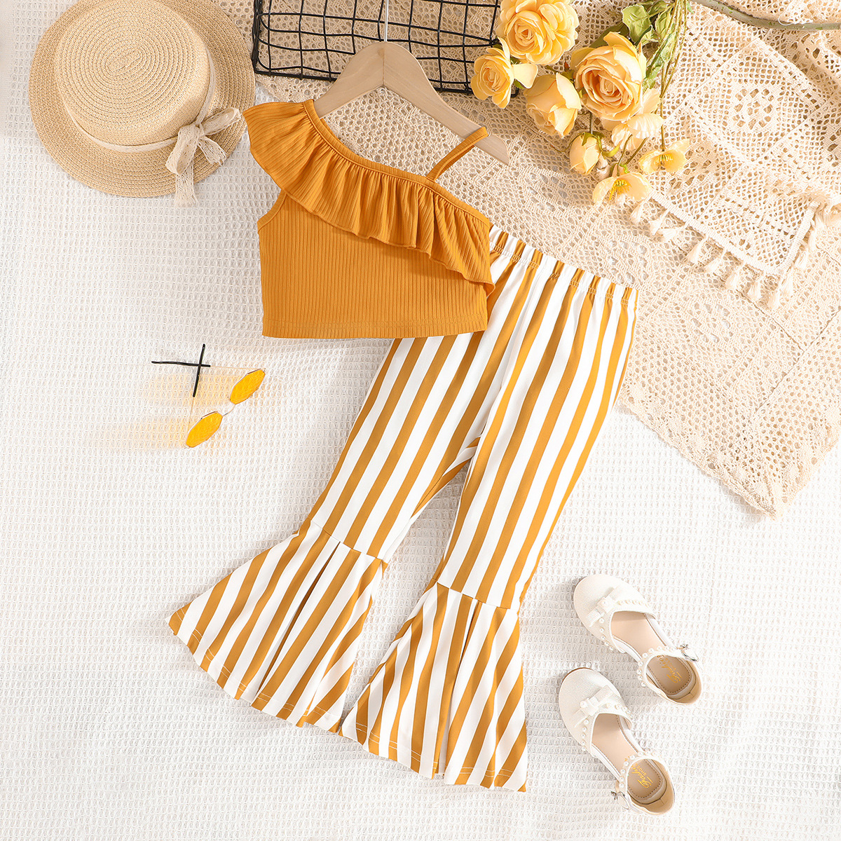 여아용 프릴 끈탑 + 스트라이프 플레어 팬츠 세트 여름 신상 캐주얼 패션 세트