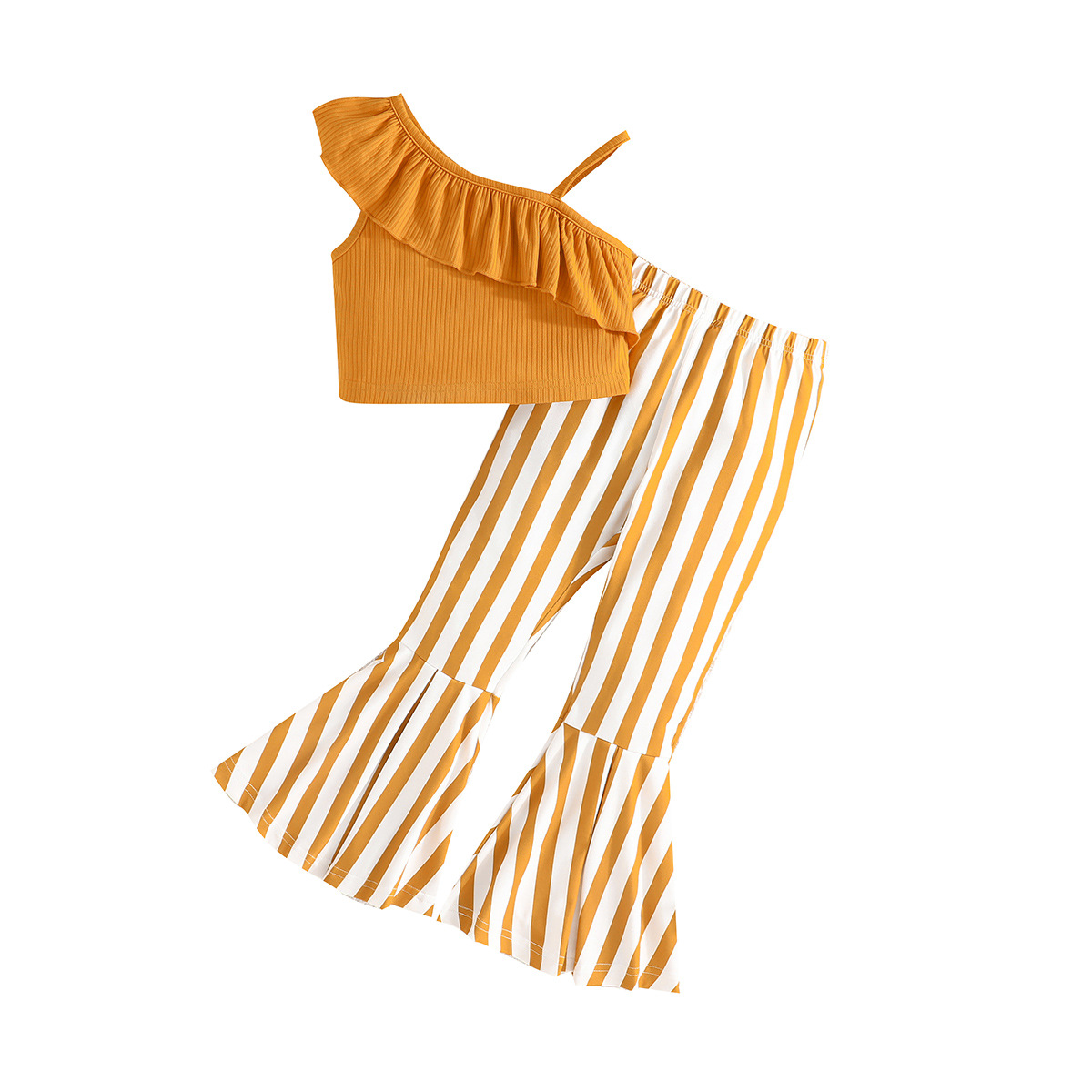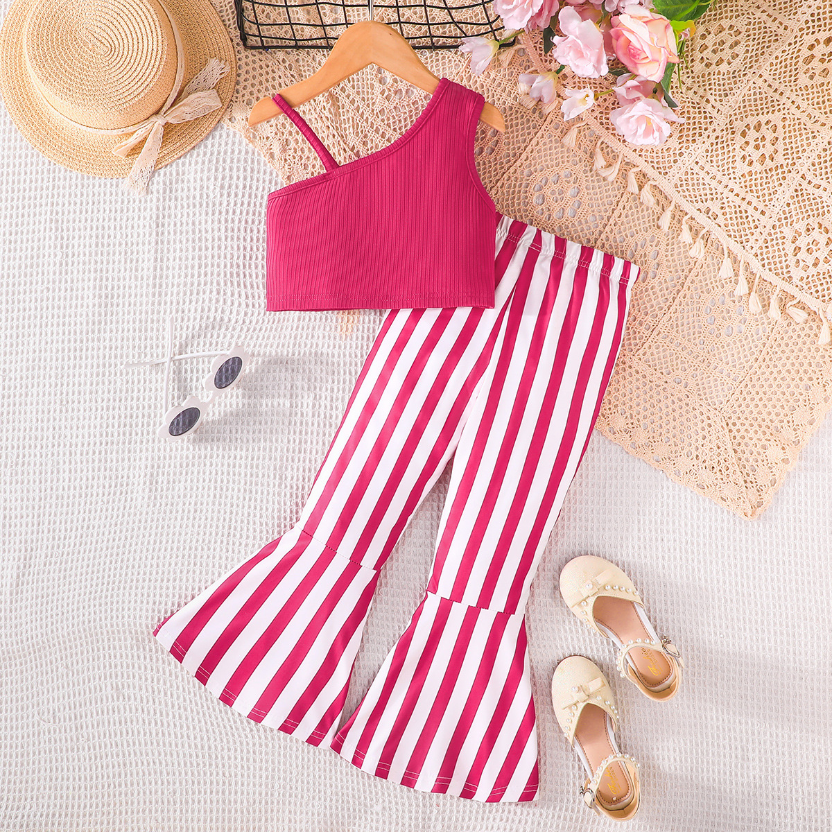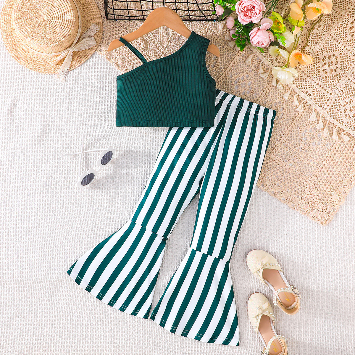 여아용 프릴 끈탑 + 스트라이프 플레어 팬츠 세트 여름 신상 캐주얼 패션 세트