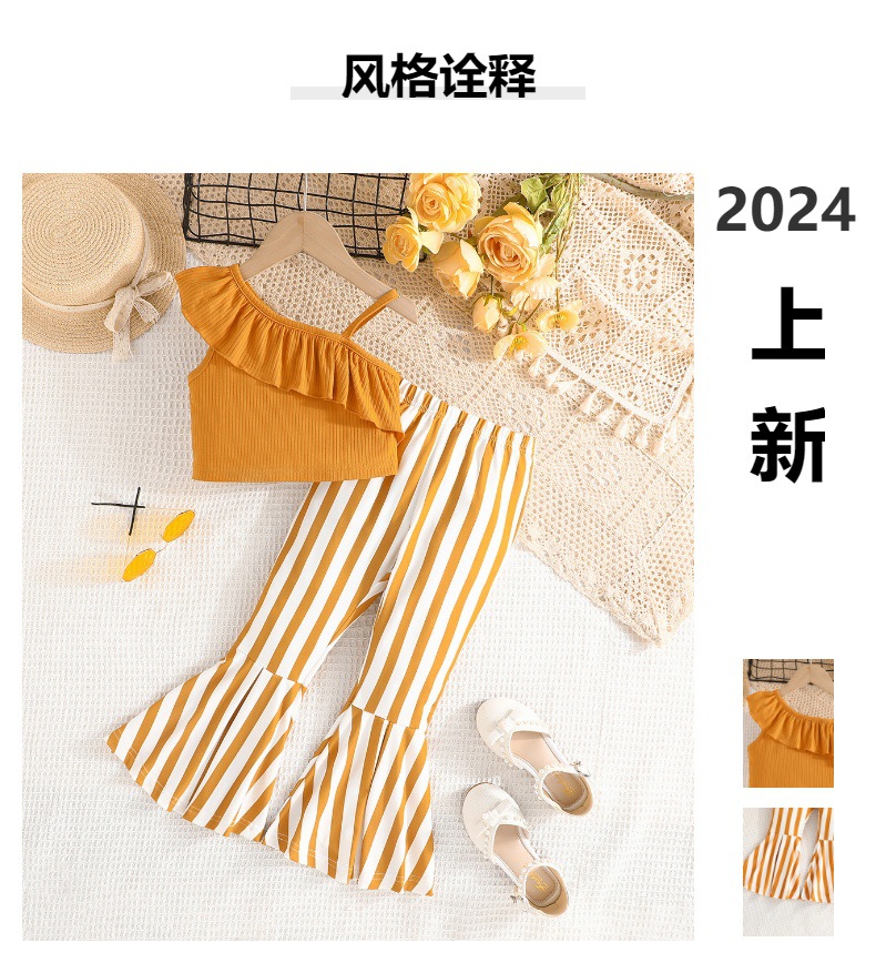 여아용 프릴 끈탑 + 스트라이프 플레어 팬츠 세트 여름 신상 캐주얼 패션 세트스토어 가기