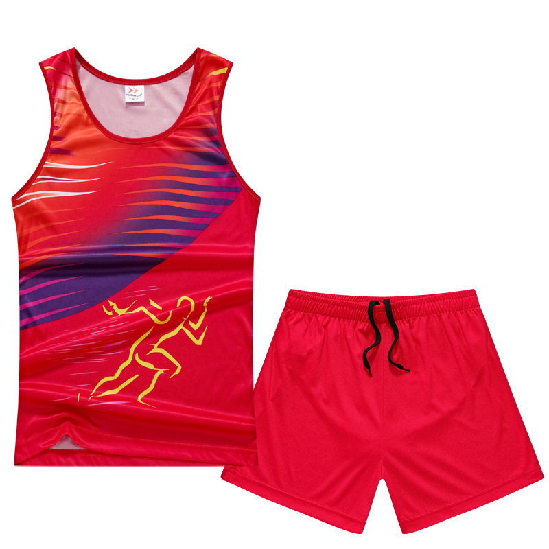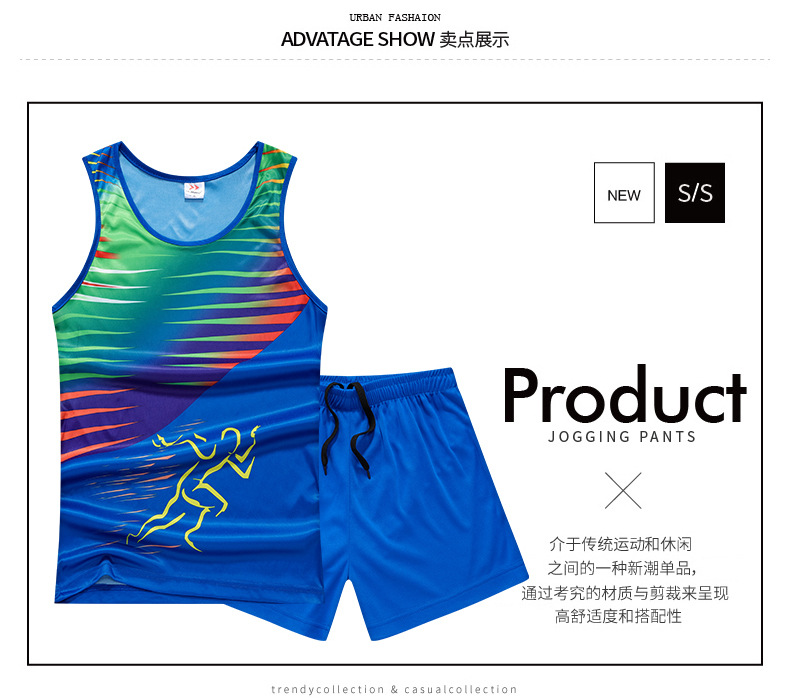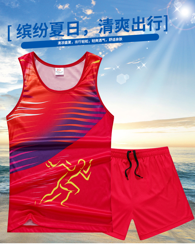 트랙 세트 세트 남녀 여름 피트니스 스포츠 조끼 마라톤 대회 학생 농구 훈련 세트 인쇄 달리기