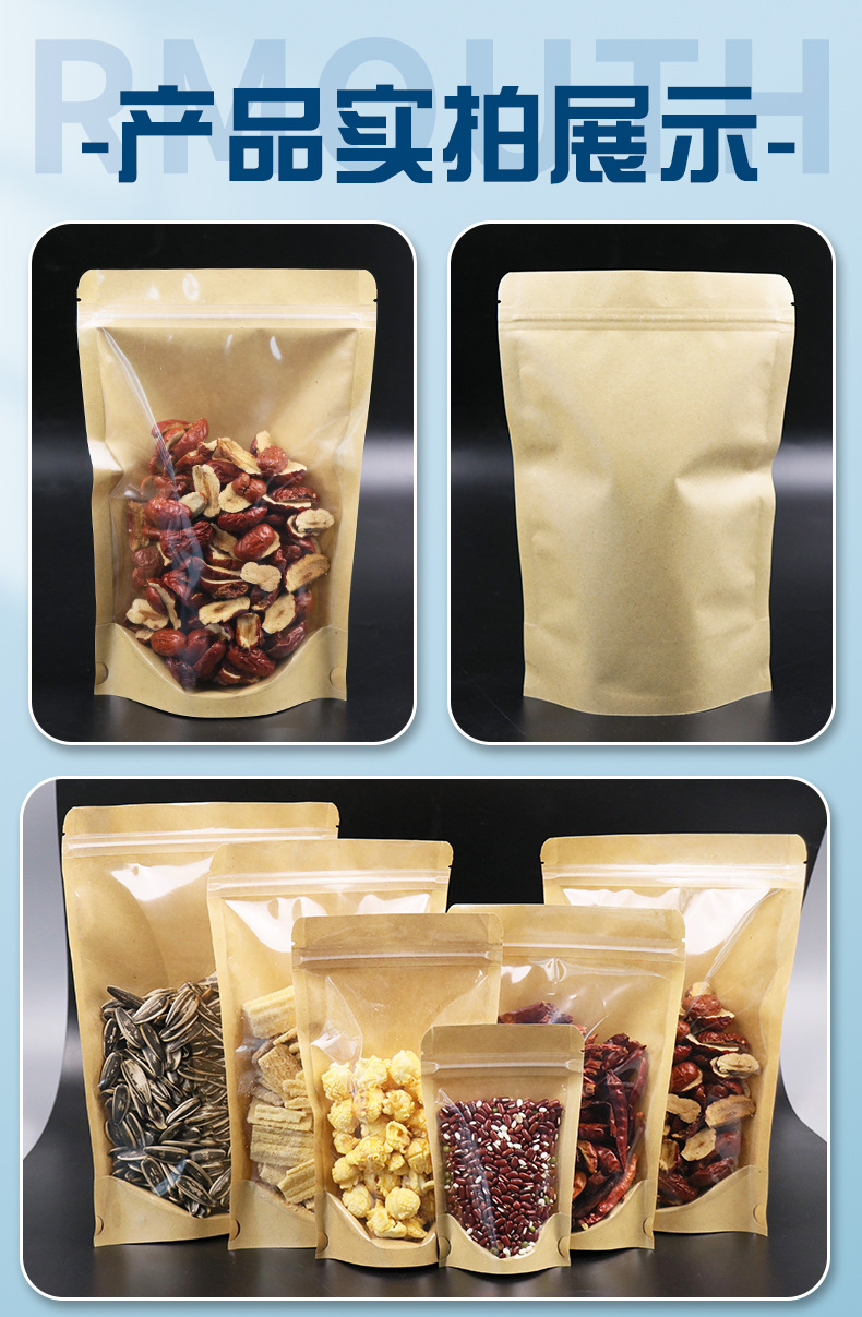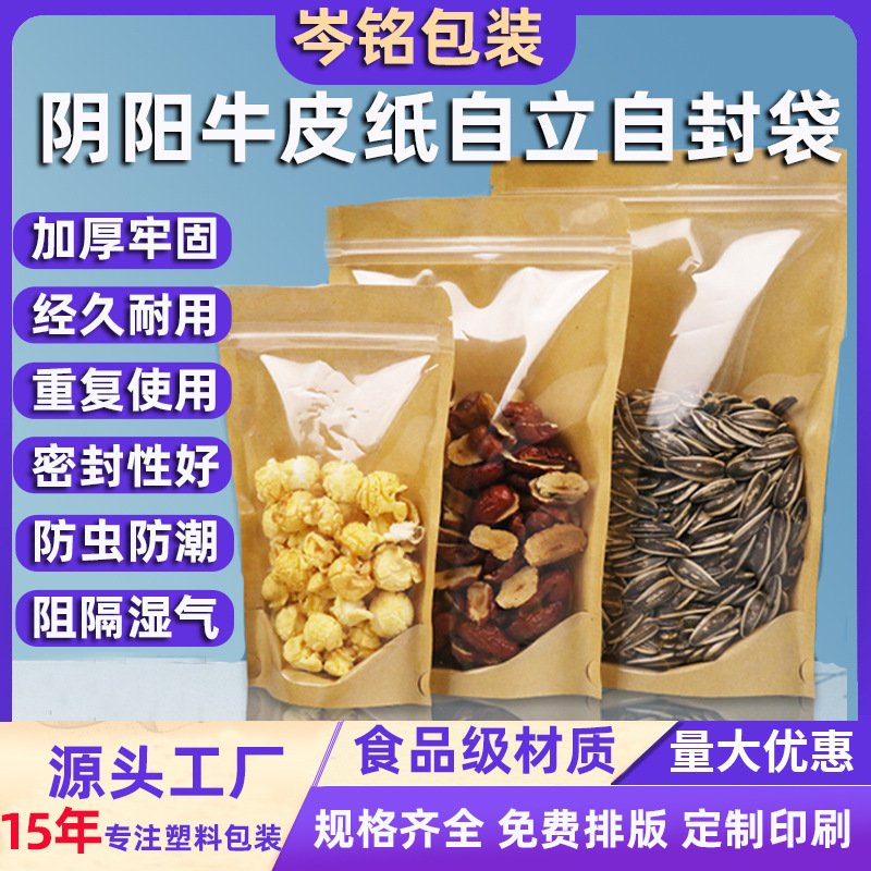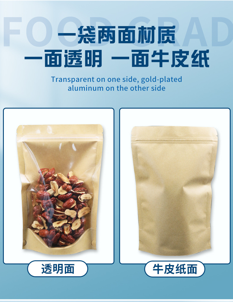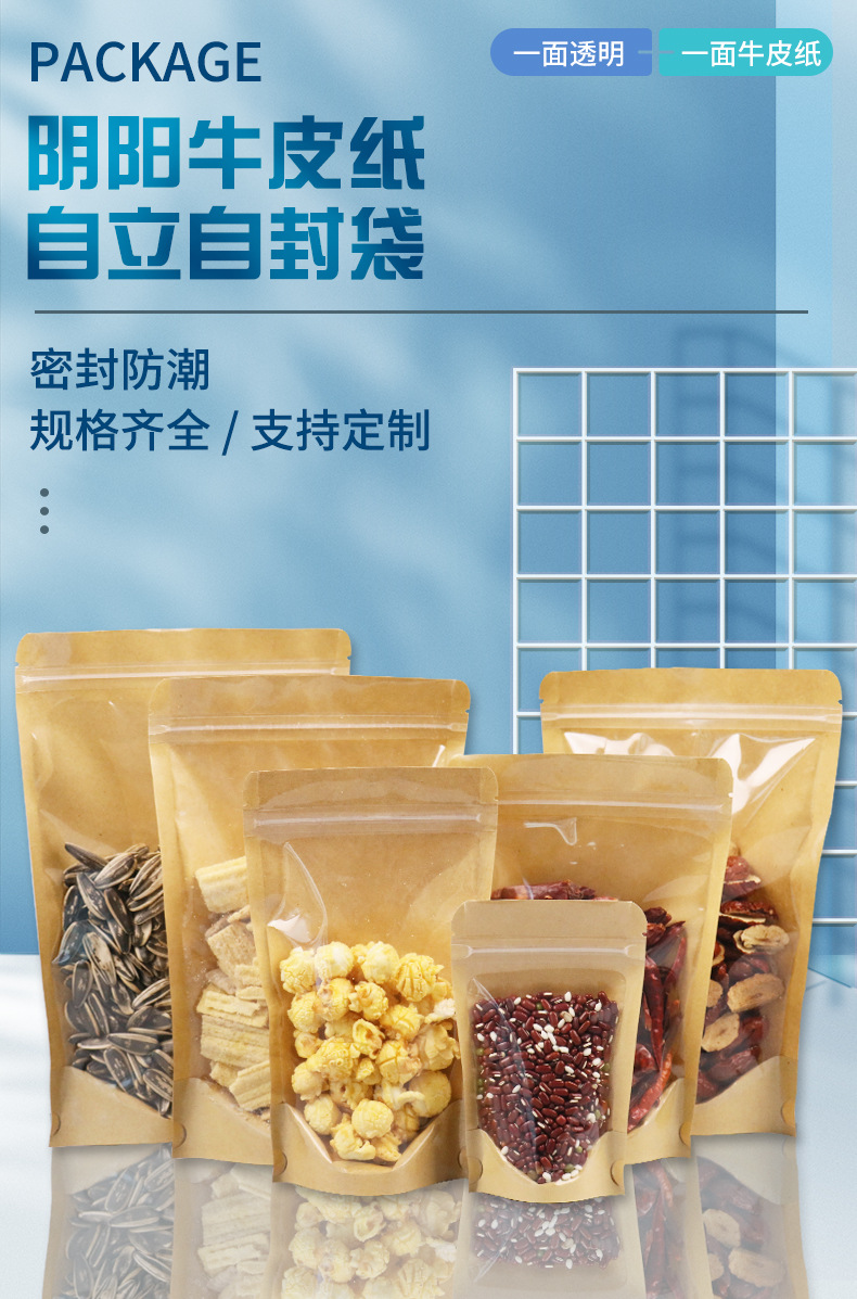 반투명 크래프트 종이 봉투 식품 포장 가방 스낵 밀봉 가방 음양 크래프트 종이 봉투 자립형 지퍼락 가방