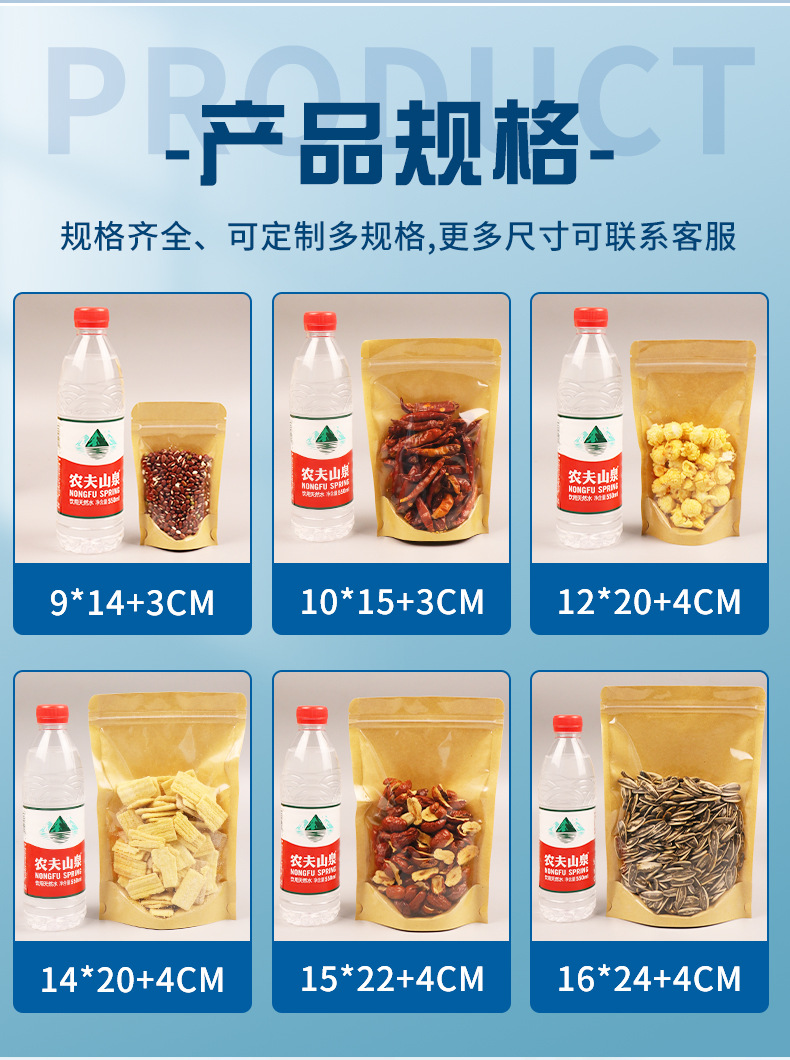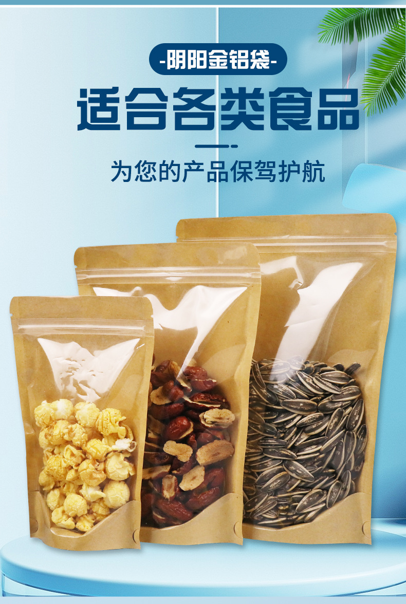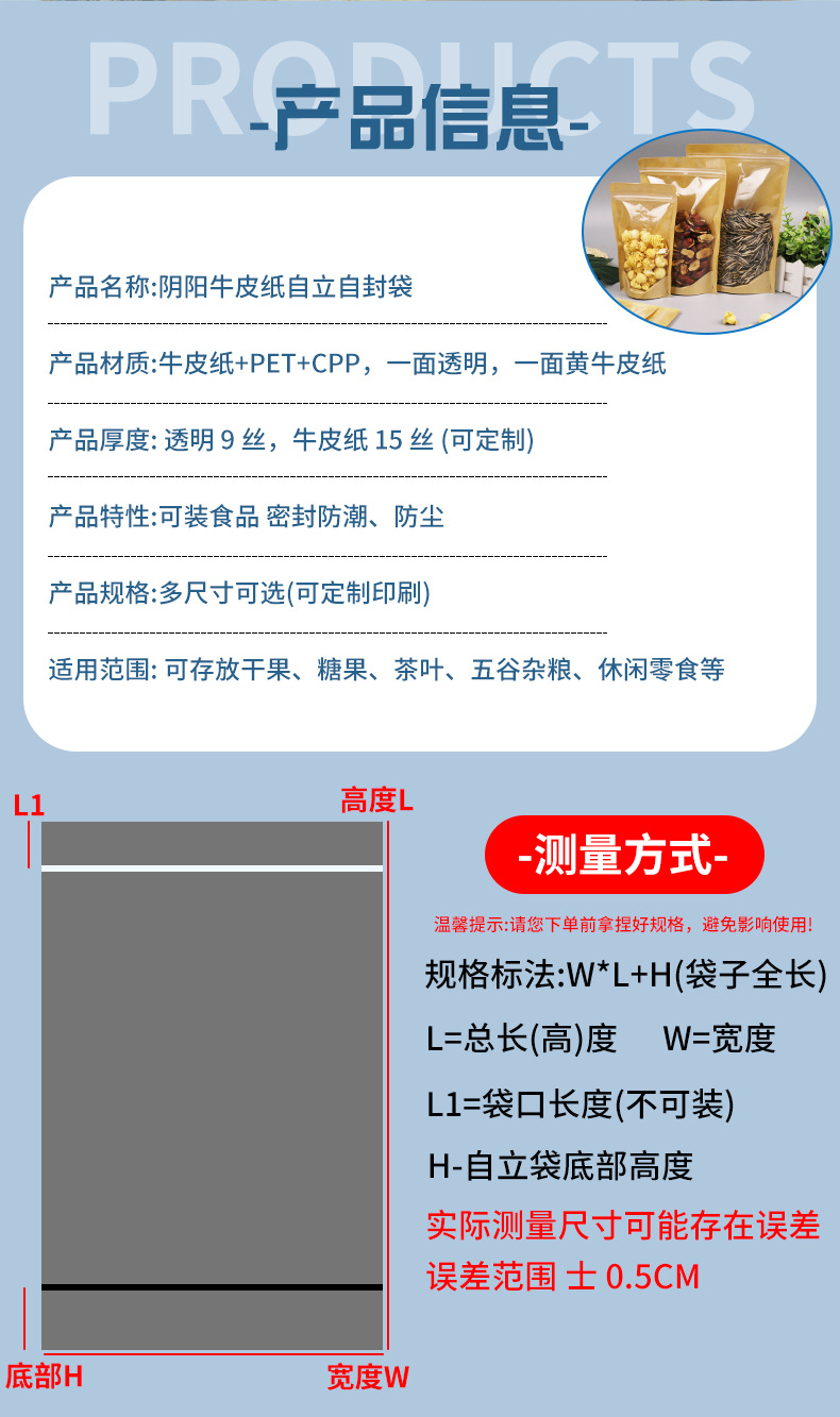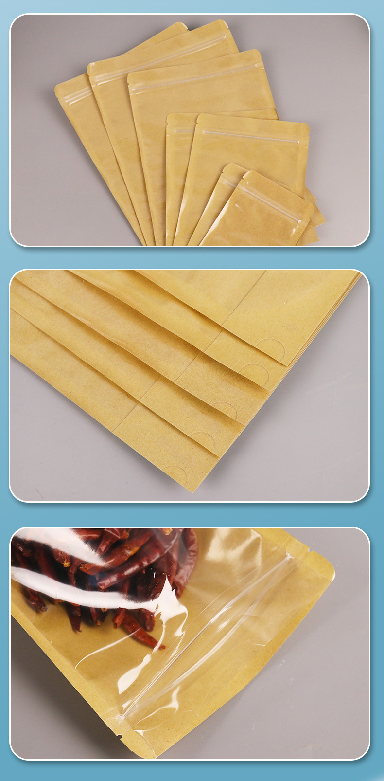 반투명 크래프트 종이 봉투 식품 포장 가방 스낵 밀봉 가방 음양 크래프트 종이 봉투 자립형 지퍼락 가방
