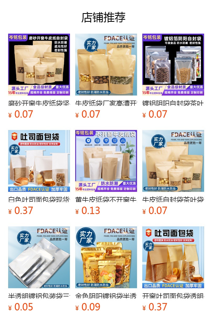 반투명 크래프트 종이 봉투 식품 포장 가방 스낵 밀봉 가방 음양 크래프트 종이 봉투 자립형 지퍼락 가방스토어 가기