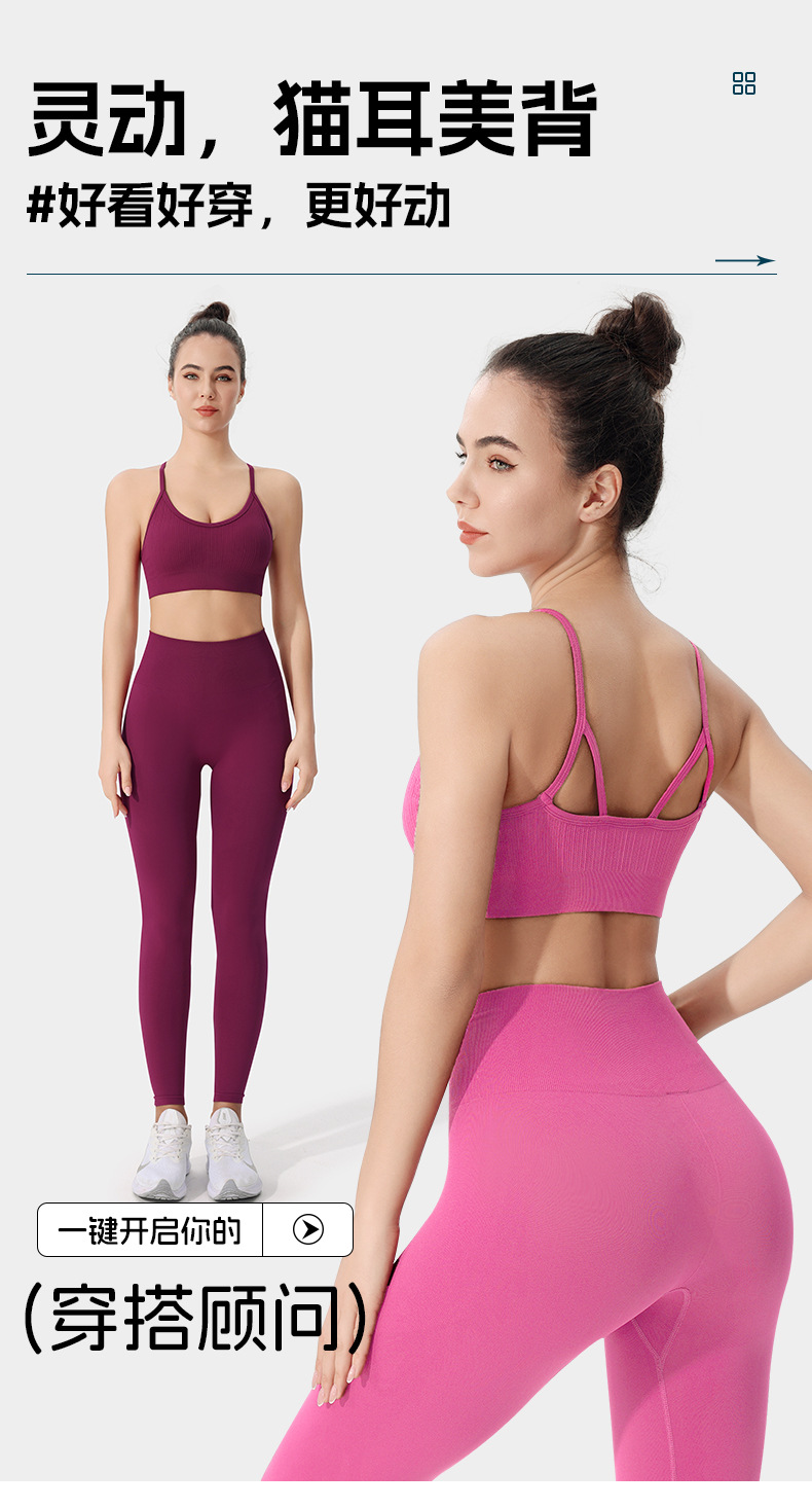 고양이 귀 뷰티 백 피트니스 조끼 여성 훈련 외부 착용 요가 옷 여성의 얇은 어깨 스트랩 고정 컵 원피스 스포츠 속옷스토어 가기