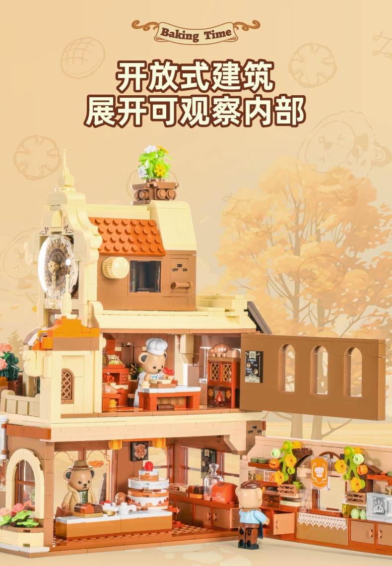 라이트 스트리트 뷰 조립 된 장난감 퍼즐 빌딩 블록 장식 소년과 소녀 선물 온라인 유명 인사가있는 Panlos Teddy 베이킹 하우스