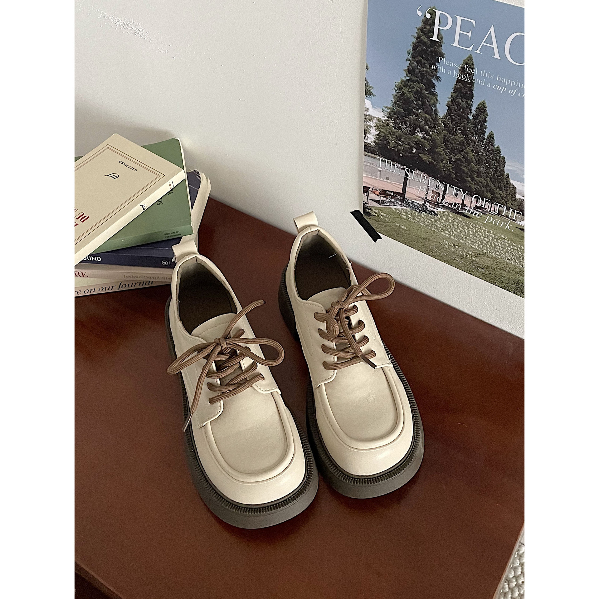 진미 화이트 레트로 영국 가죽 신발 여성 봄과 가을 2024 새로운 세련된 다양한 프랑스 스타일 틈새 플랫폼 신발스토어 가기