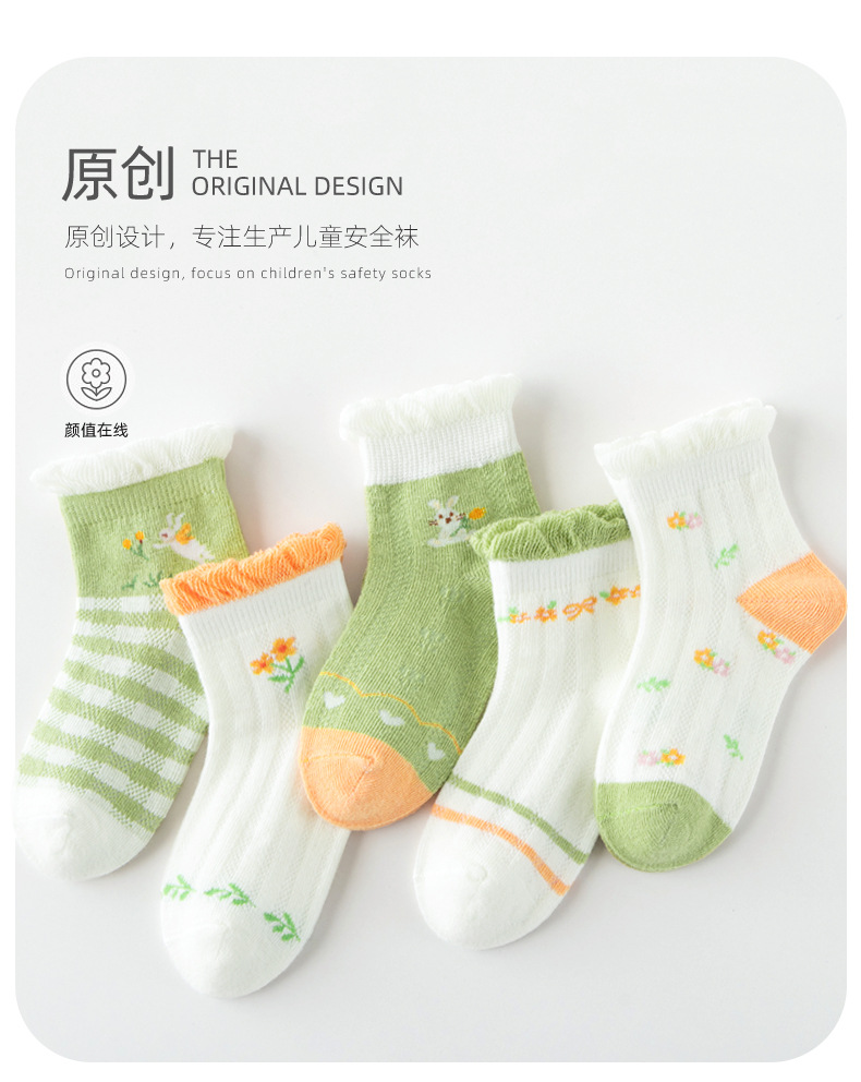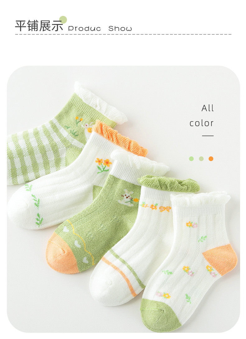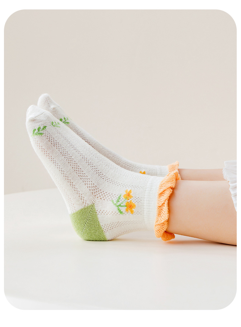 儿童袜子夏季薄款女童棉袜春夏网眼可爱花朵女孩袜子透气棉袜批发