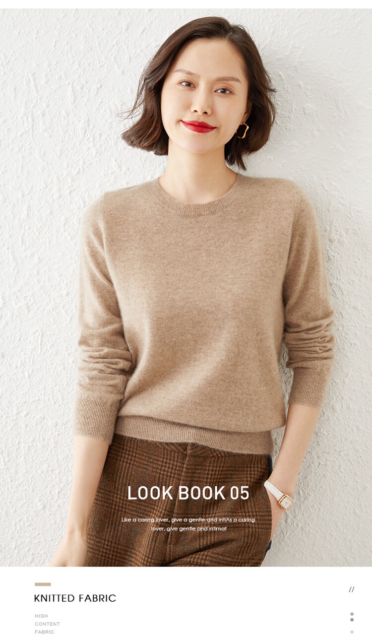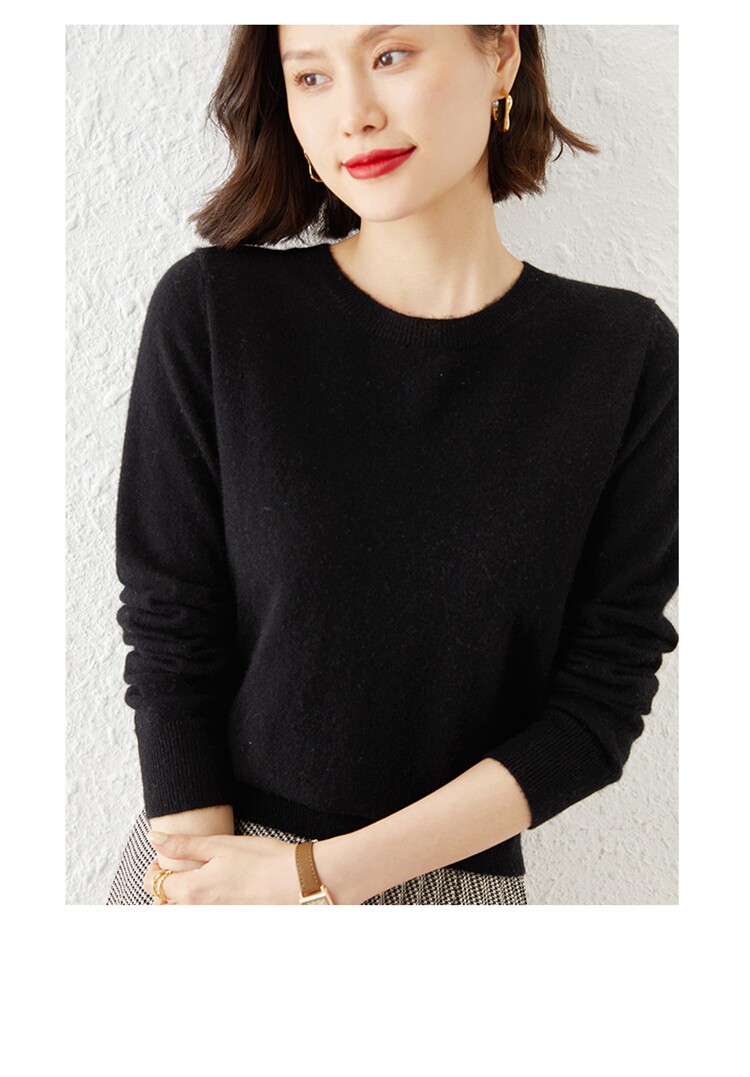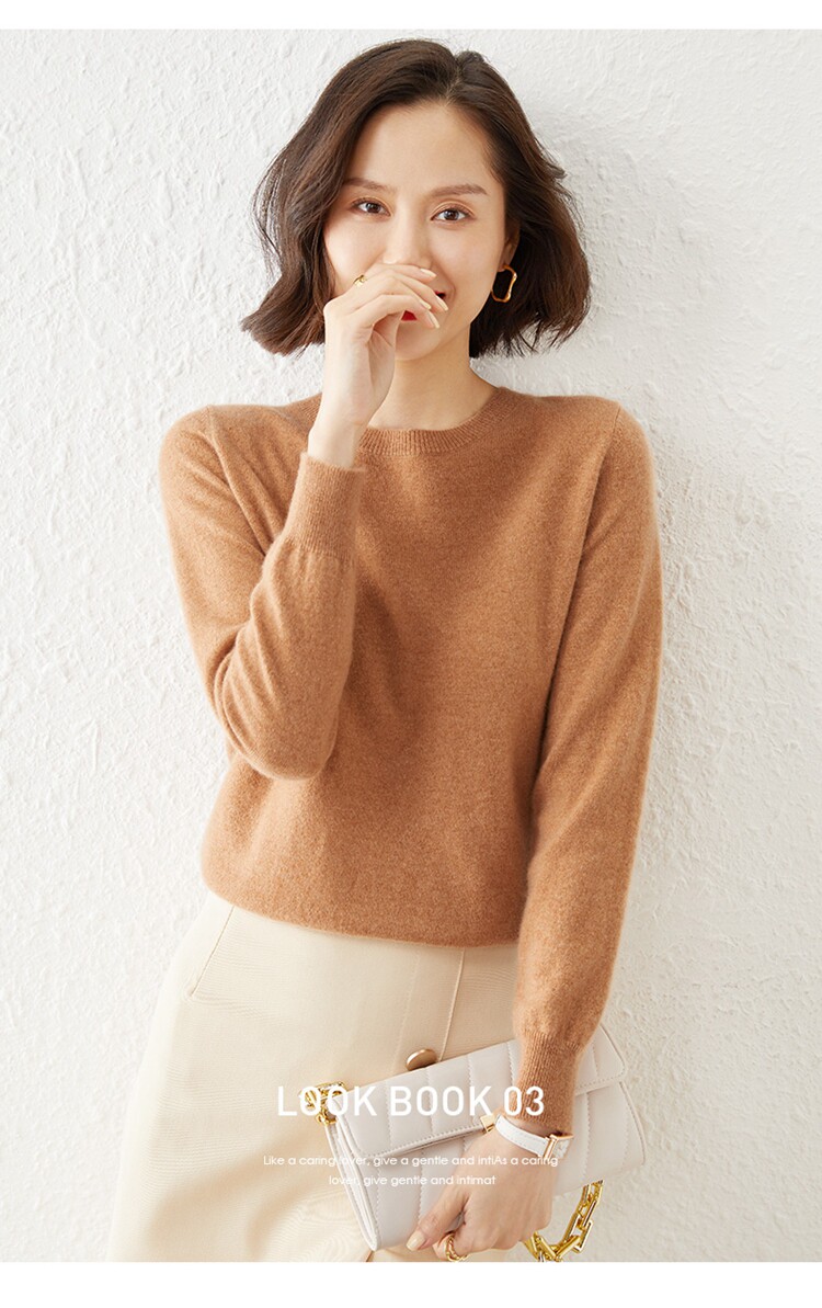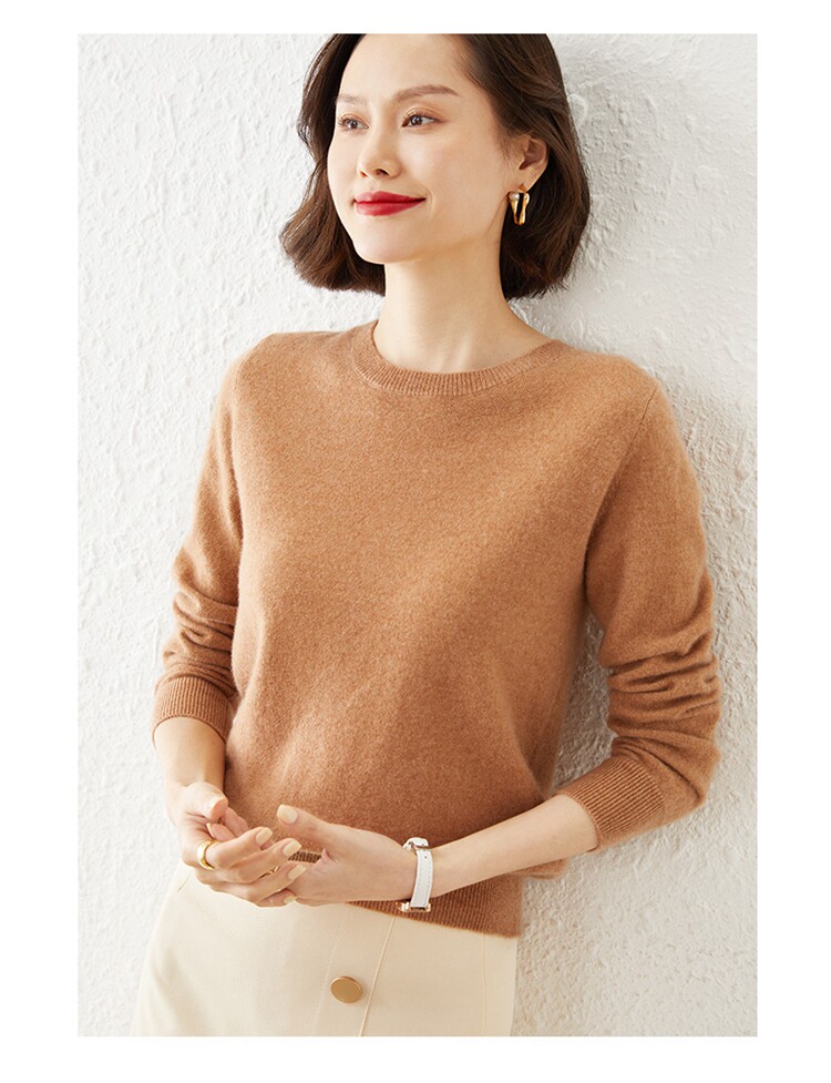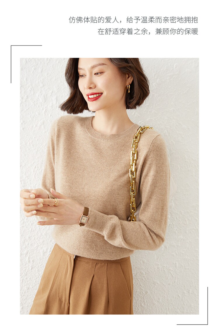 브랜드 도매 할인 2024 캐시미어 스웨터 가을과 겨울 둥근 목 니트 바닥 셔츠 슬림 내부 캐시미어 스웨터 여성용 스웨터