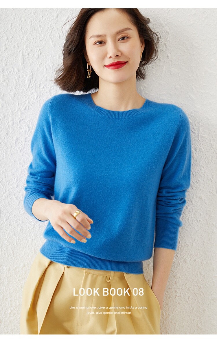 브랜드 도매 할인 2024 캐시미어 스웨터 가을과 겨울 둥근 목 니트 바닥 셔츠 슬림 내부 캐시미어 스웨터 여성용 스웨터스토어 가기